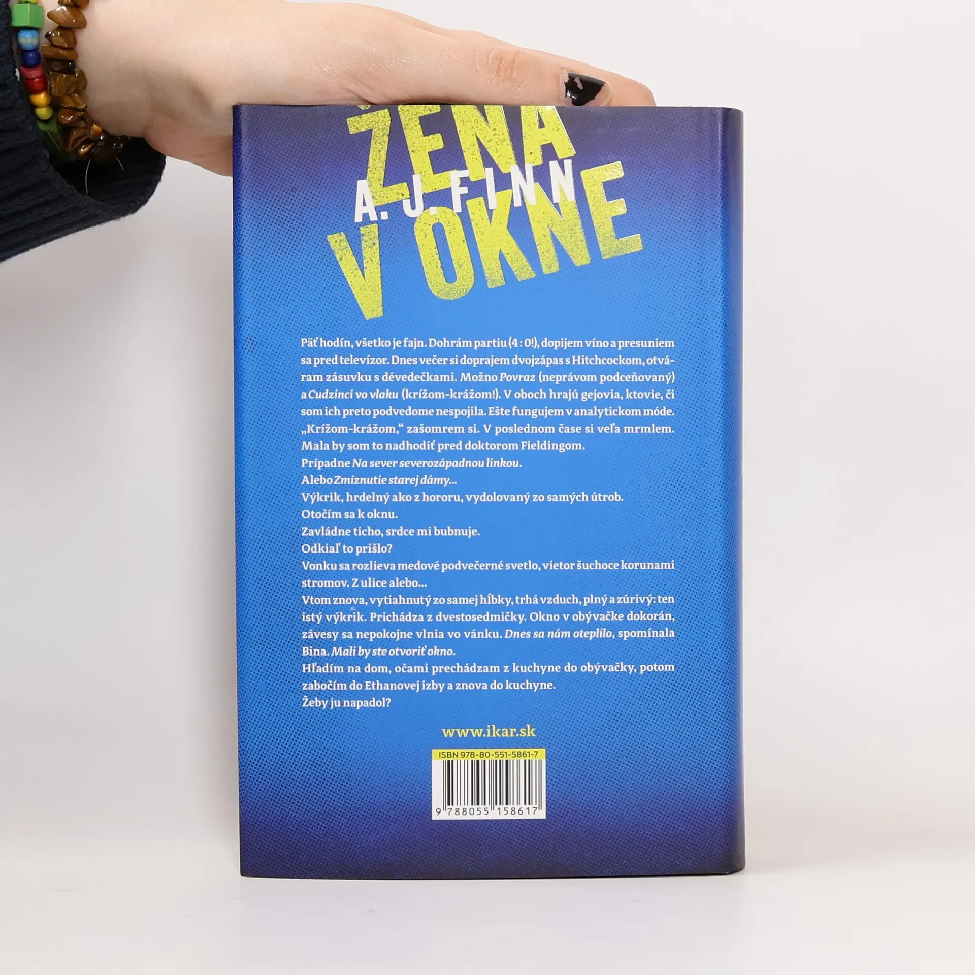Ubehlo desať mesiacov, odkedy Anna Foxová naposledy vyšla zo svojho starého domu v New Yorku. Desať mesiacov putuje miestnosťami ako duch, desať mesiacov sa oddáva spomienkam, popíja (asi príliš) a bojí sa vyjsť von. Anna trpí agorafóbiou, chorobným strachom z otvorených priestranstiev. Okno je jej jediným spojením so svetom. Sedáva pri ňom deň čo deň a pozorne sleduje všetky zmeny v susedstve. Keď sa do domu naproti nasťahujú Russellovci, okamžite ju niečím priťahujú. Otec, matka a dospievajúci syn, obraz dokonalej rodiny, vzdialená ozvena Anninho niekdajšieho života. Iba Anna však vie, že zďaleka nie všetko je také uhladené ako na povrchu. Noc pretne desivý výkrik. Vzápätí ďalší. Kto však uverí žene, ktorá celé dni len postáva pri okne? Môže vôbec veriť sama sebe, spoľahnúť sa na svoje zmysly otupené samotou? Anna si uvedomuje, že ak chce dokázať zločin, najprv musí vyjsť z vlastnej ulity.
