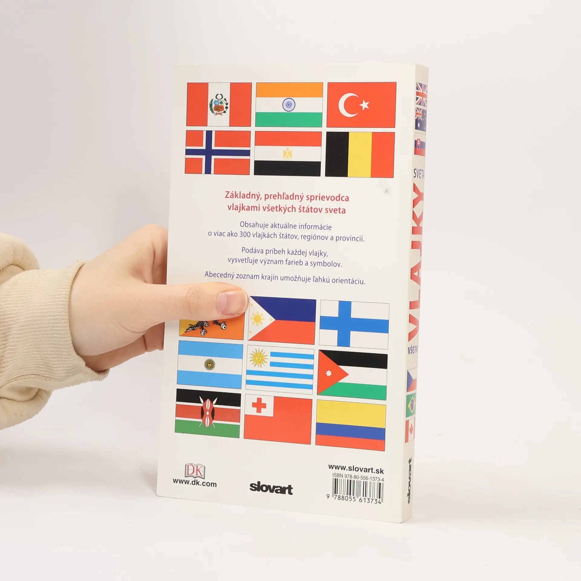 Základný sprievodca vlajkami všetkých krajín sveta. Kniha je prehľadná a obsahuje aktuálne informácie o viac ako 300 vlajkách štátov, regiónov a provincií. Podáva príbeh každej vlajky, vysvetľuje význam farieb, symbolov a insígnií. Zaujme každého člena rodiny, od malých zvedavcov po dospelých zberateľov faktov.