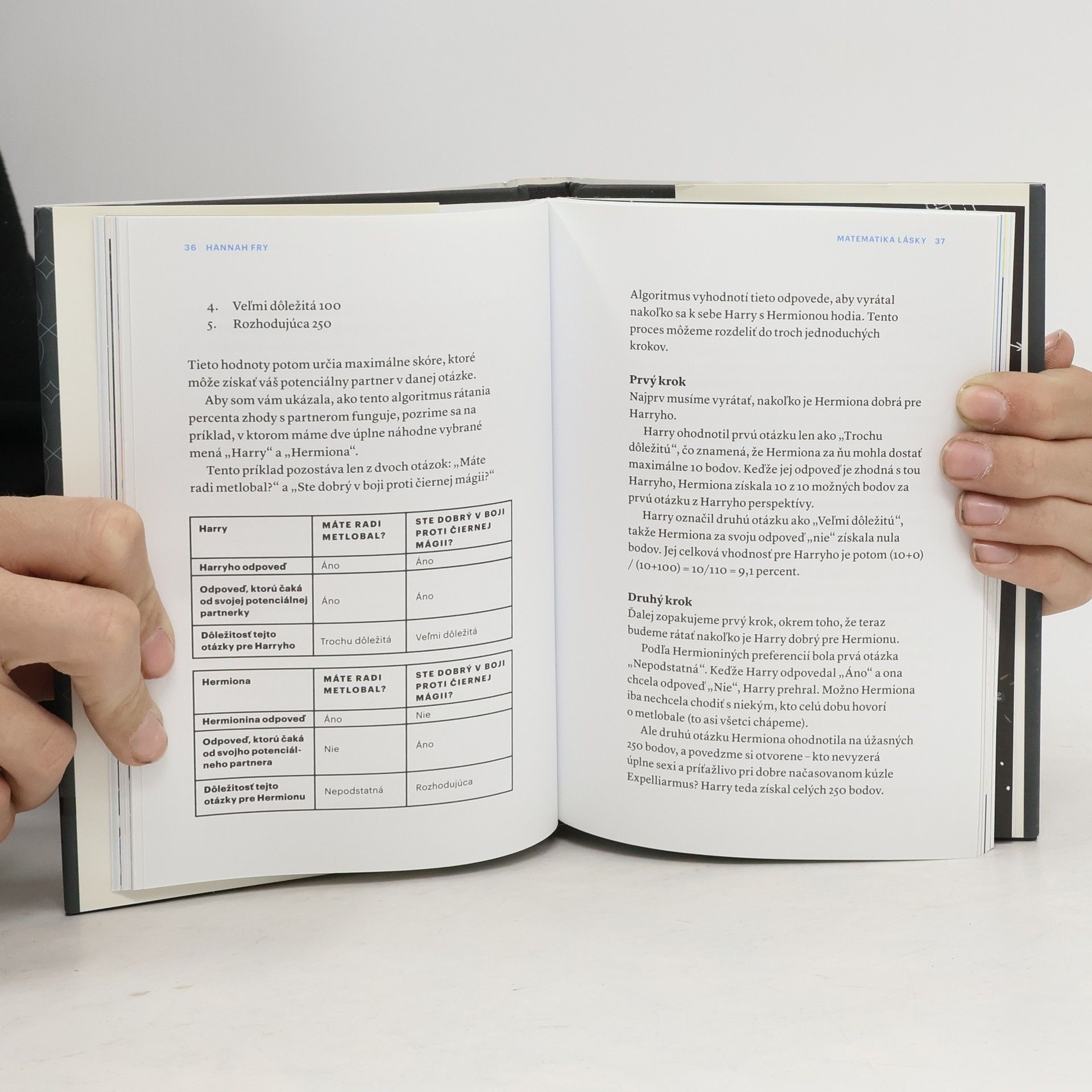 Či už ide o počet sexuálnych partnerov alebo o to, komu napíšeme na internetovej zoznamke, tieto vzorce nám život obracajú hore nohami ako láska samotná. Ale všetky sa dajú matematicky odhaliť. Hannah Fry sa s humorom a zároveň aj s vážnosťou, ktorá téme hľadania životného partnera prináleží, zamýšľa nad tým, ako nám môže matematika pomôcť pri problémoch s láskou. Pomocou jedinečnej knižky Matematika lásky pochopíte ako funguje hľadanie partnera, chémia príťažlivosti, náhoda a pravdepodobnosť, koľko partnerov musíte spoznať, kým nájdete toho pravého, ako si ho potom udržať a následne aj to, ako pripraviť svadbu snov bez zbytočných vrások. Matematika má proste odpoveď na všetko.