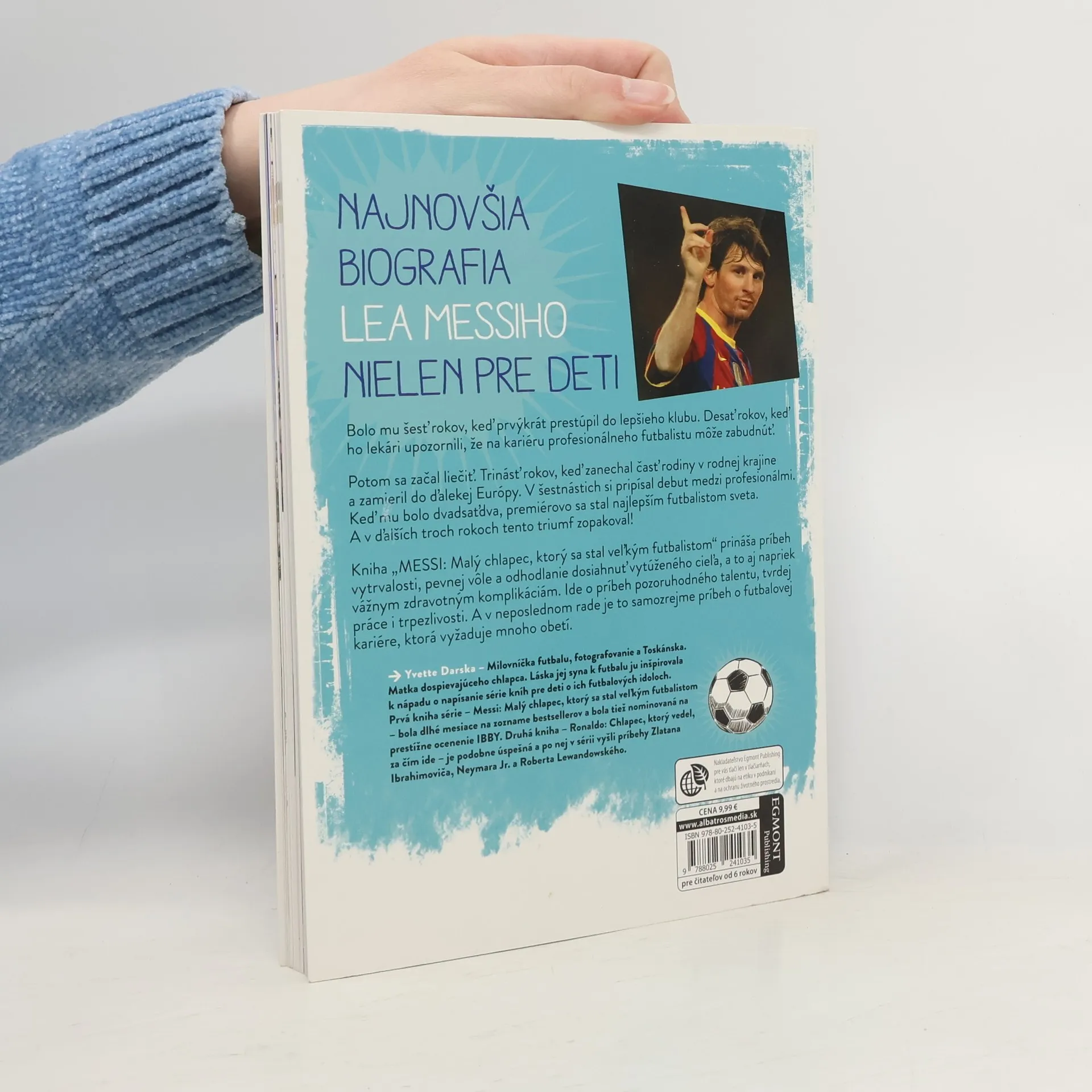 Malý chlapec, ktorý sa stal veľkým futbalistom. Pútavý príbeh niekoľkonásobného držiteľa Zlatej lopty a víťaza Ligy majstrov v unikátnom podaní! Knižka je prvým dielom unikátnych kníh o slávnych futbalistoch. Prináša príbeh o vytrvalosti, pevnej vôli a odhodlaní dosiahnuť vytúžený cieľ, a to aj napriek vážnym zdravotným komplikáciám. Kniha tiež obsahuje málokedy publikované fotografie z Messiho detstva a dospievania. Ideálne aj pre mladších čitateľov!