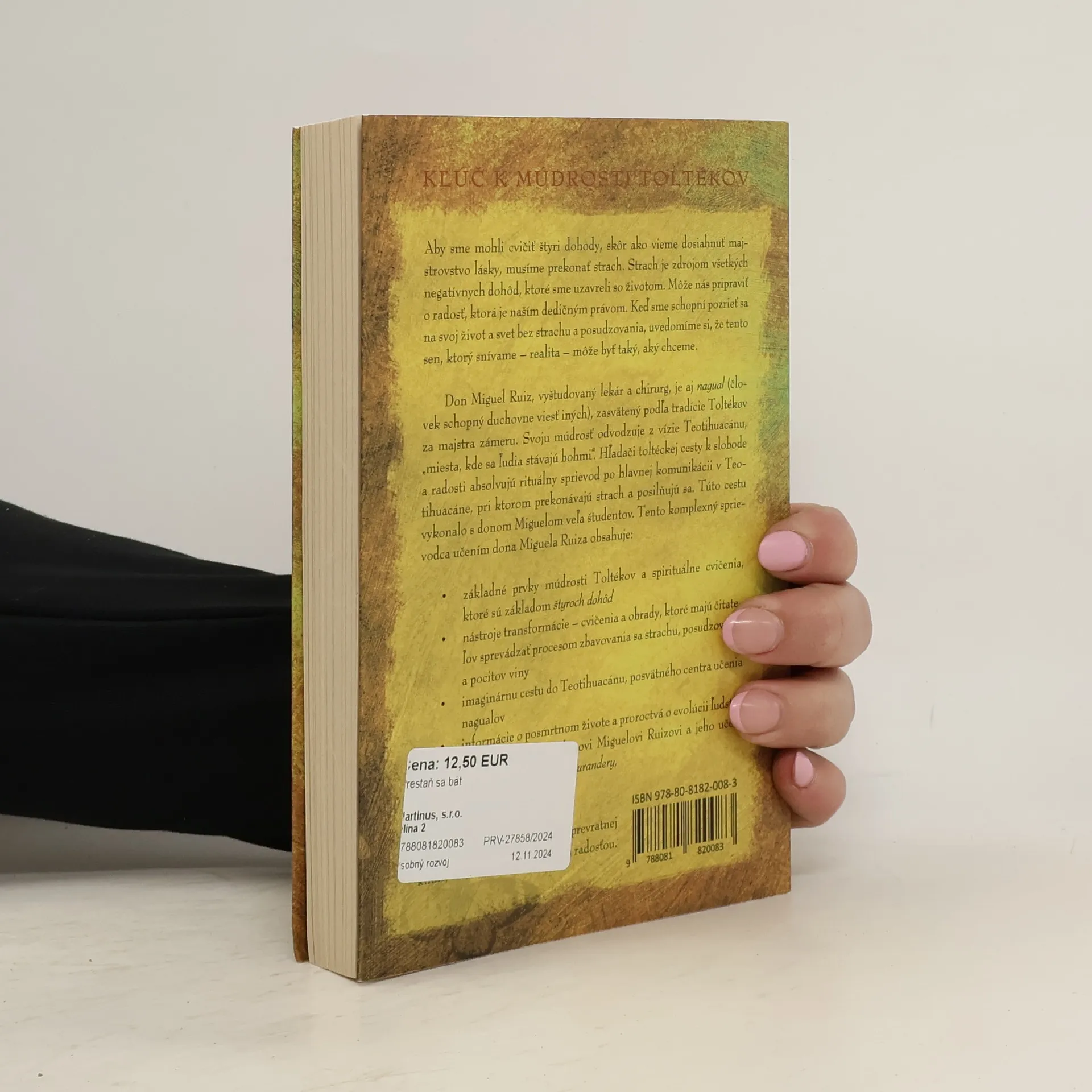 Aby sme mohli cvičiť štyri dohody a dosiahnuť majstrovstvo lásky, musíme najprv prekonať strach, ktorý je zdrojom všetkých negatívnych dohôd so životom. Strach nás môže pripraviť o radosť, ktorá je naším dedičným právom. Keď sa na svoj život a svet pozrieme bez strachu a posudzovania, uvedomíme si, že naša realita môže byť taká, akú si želáme. Don Miguel Ruiz, vyštudovaný lekár a chirurg, je aj nagual, duchovný vodca zasvätený tradícii Toltékov. Svoju múdrosť čerpá z vízie Teotihuacánu, „miesta, kde sa ľudia stávajú bohmi“. Hľadači toltéckej cesty k slobode absolvujú rituálny sprievod po Teotihuacáne, kde prekonávajú strach a posilňujú sa. Tento komplexný sprievodca obsahuje základné prvky múdrosti Toltékov a duchovné cvičenia, ktoré sú základom štyroch dohôd, ako aj nástroje transformácie, ktoré čitateľov sprevádzajú procesom zbavovania sa strachu, posudzovania a pocitov viny. Obsahuje aj imaginárnu cestu do Teotihuacánu, informácie o posmrtnom živote a proroctvá o evolúcii ľudstva, ako aj životopisné údaje o donovi Miguelovi Ruizovi a jeho učení u matky Sarity, slávnej liečiteľky. Vedomosti v tejto knihe majú moc nahradiť strach radosťou.