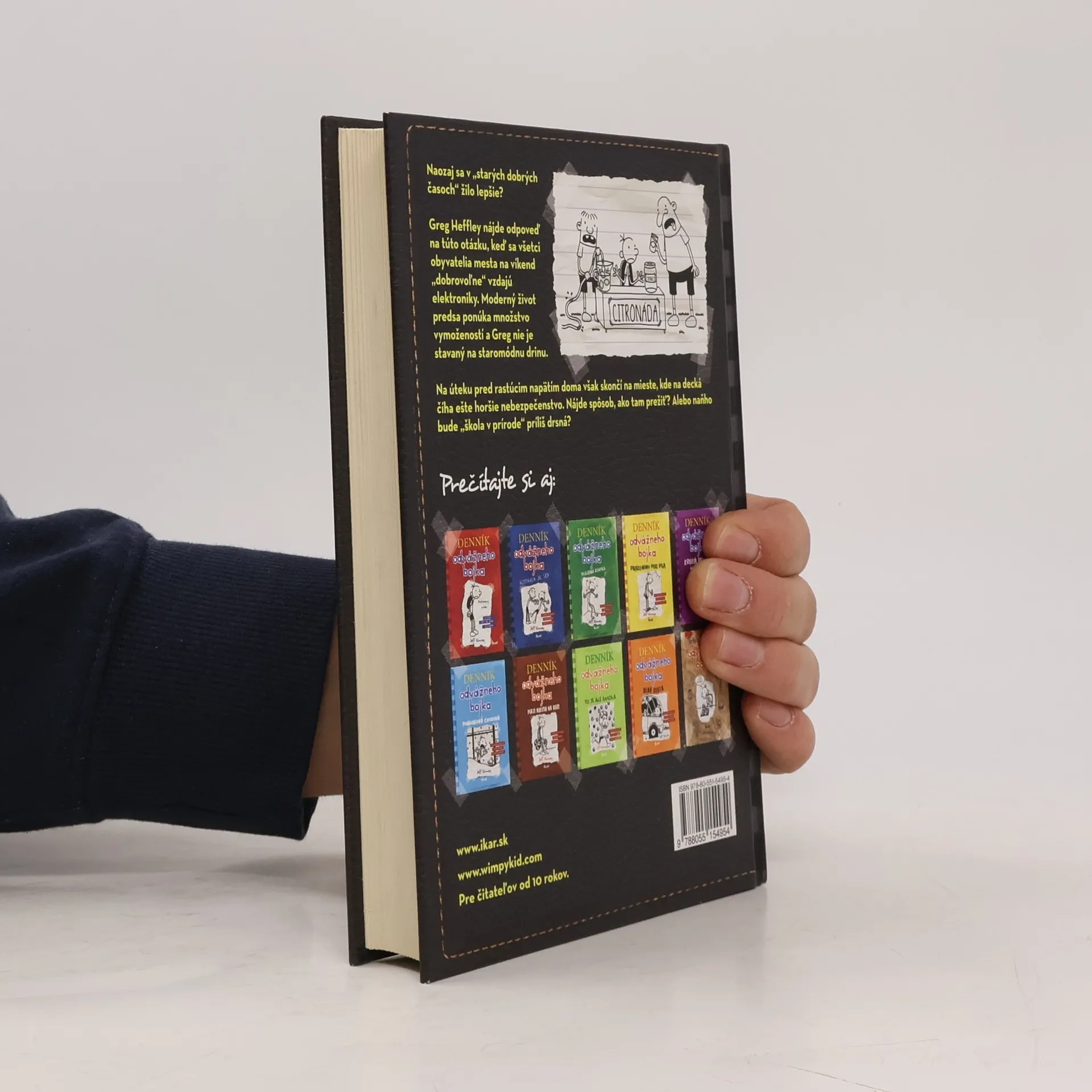 Séria: Denník odvážneho bojka 10. Naozaj sa v „starých dobrých časoch“ žilo lepšie? Greg Heffley nájde odpoveď na tú otázku, keď sa všetci obyvatelia mesta na víkend „dobrovoľne“ vzdajú elektroniky. Moderný život predsa ponúka množstvo vymožeností a Greg nie je stavaný na staromódnu drinu. Na úteku pred rastúcim napätím doma však skončí na mieste, kde na decká číha ešte horšie nebezpečenstvo. Nájde spôsob, ako tam prežiť? Alebo naňho bude „škola v prírode“ príliš drsná?