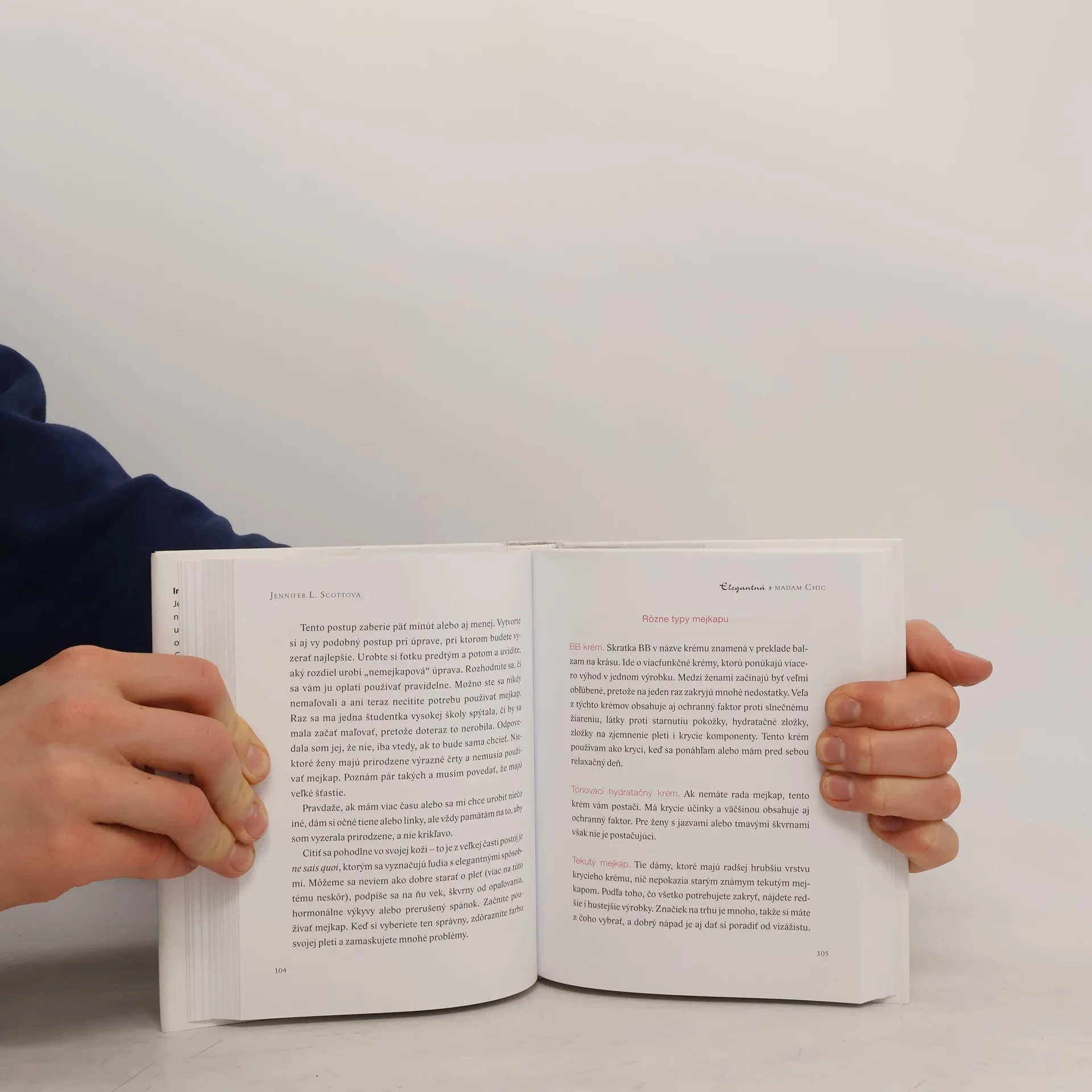 Jennifer L. Scottová ako študentka na zahraničnom výmennom pobyte v Paríži bývala u rodiny, ktorá ju inšpirovala a zásadne ovplyvnila jej životný štýl. Pani domu madam Chic si vzala bezstarostnú dospievajúcu dievčinu z Kalifornie pod svoje ochranné krídla a umožnila jej spoznať, ako Francúzi povyšujú bežné maličkosti života na umenie žiť. Jennifer svoje skúsenosti zúročila nielen vo vlastnom živote, ale podelila sa o ne s obdivovateľkami parížskeho šik štýlu v úspešných knihách Lekcie madam Chic a Doma s madam Chic. Všetkým, ktorým učaroval francúzsky šarm a nenútené spôsoby, je určená aj jej tretia kniha. Prezrádza v nej, v čom tkvie sila elegancie, ako vďaka správnemu držaniu tela, vhodnému výberu oblečenia, vkusnému účesu a líčeniu pôsobiť kultivovane a sebaisto. Poradí, ako sa prezentovať na verejnosti, vhodne správať v spoločnosti či stať sa skvelou hostiteľkou. Inšpirujte sa a staňte sa šik aj vy!