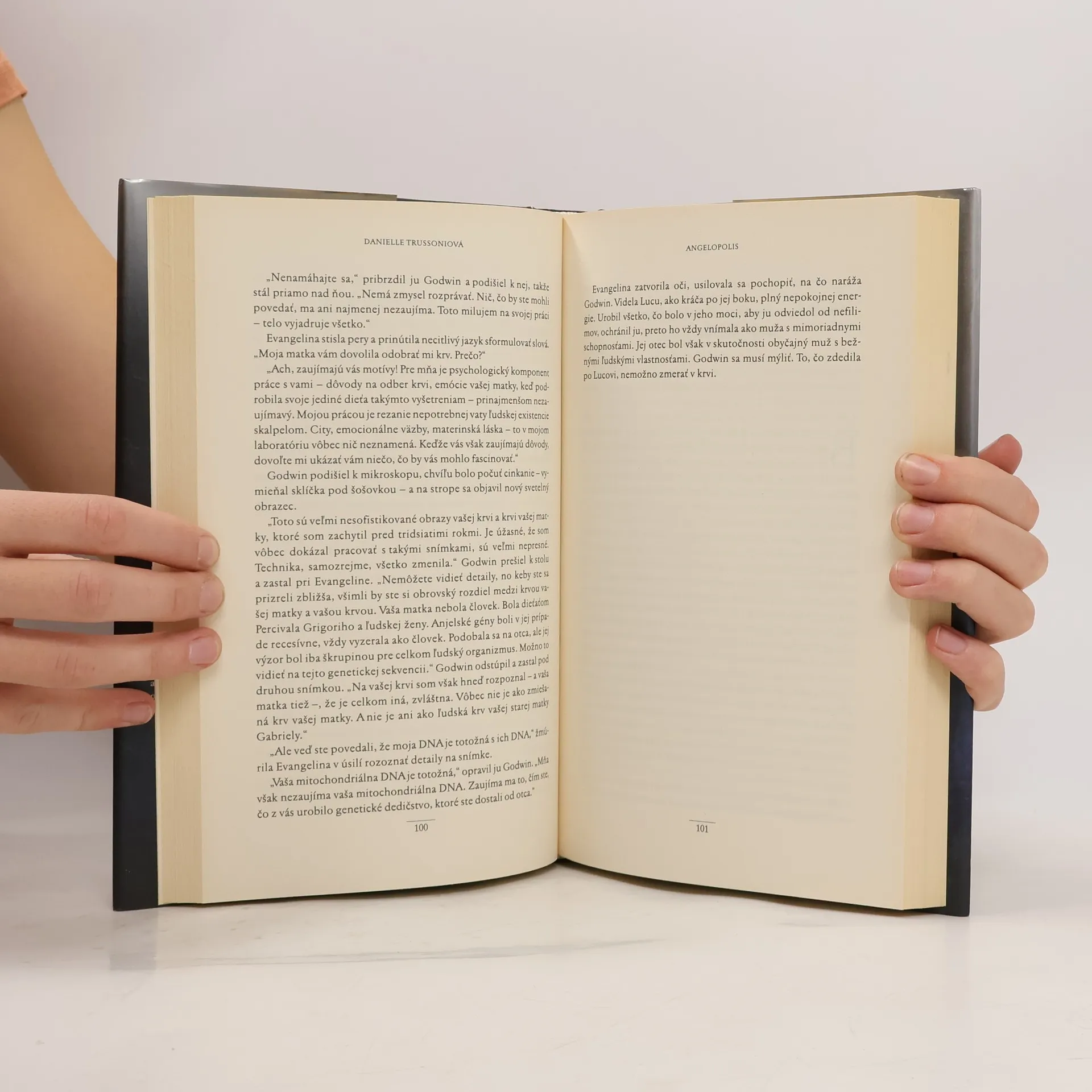 Prvý román Danielle Trussoniovej sa stal bestsellerom a celosvetovou senzáciou, pričom mýty a biblická tradícia sa prelínajú so súčasnosťou. Dvaja hrdinovia sa ocitajú uprostred odvekej vojny medzi ľudstvom a nefilimami, osudovo príťažlivými miešancami ľudí a anjelov. V pokračovaní sa konflikt prehlbuje a rozpútava sa peklo plné nebezpečenstiev a vášne. Verlaine, elitný lovec anjelov, sa po viac než desiatich rokoch opäť stretáva s Evangelinou, ktorej krídla sú preňho symbolom zrady. Jeho cieľom je chytiť, uväzniť a zlikvidovať jej druh. Keď sa však Evangelina objaví na parížskej ulici, Verlaine si uvedomí, že je iná ako ostatné bytosti, ktoré prenasledoval. Jeho pochybnosti sa prehlbujú, keď ju pred ním unesie anjel, ktorý je už vyše storočia najhľadanejšou bytosťou. Nasledujúca naháňačka zavedie Verlaina a ďalších angelológov z Paríža cez cárske paláce v Sankt Peterburgu až do hlbokých sibírskych gubernií a k brehom Čierneho mora. Tam čaká pravda o Evangelininom pôvode a sily, ktoré môžu viesť k víťazstvu alebo záhube. Príbeh spája históriu, vedu a staroveké vyobrazenia archanjela Gabriela do dramatického vyrozprávania o únose, hľadaní pokladu a nebeskej vojne, v ktorej osud ľudstva visí na vlásku.
