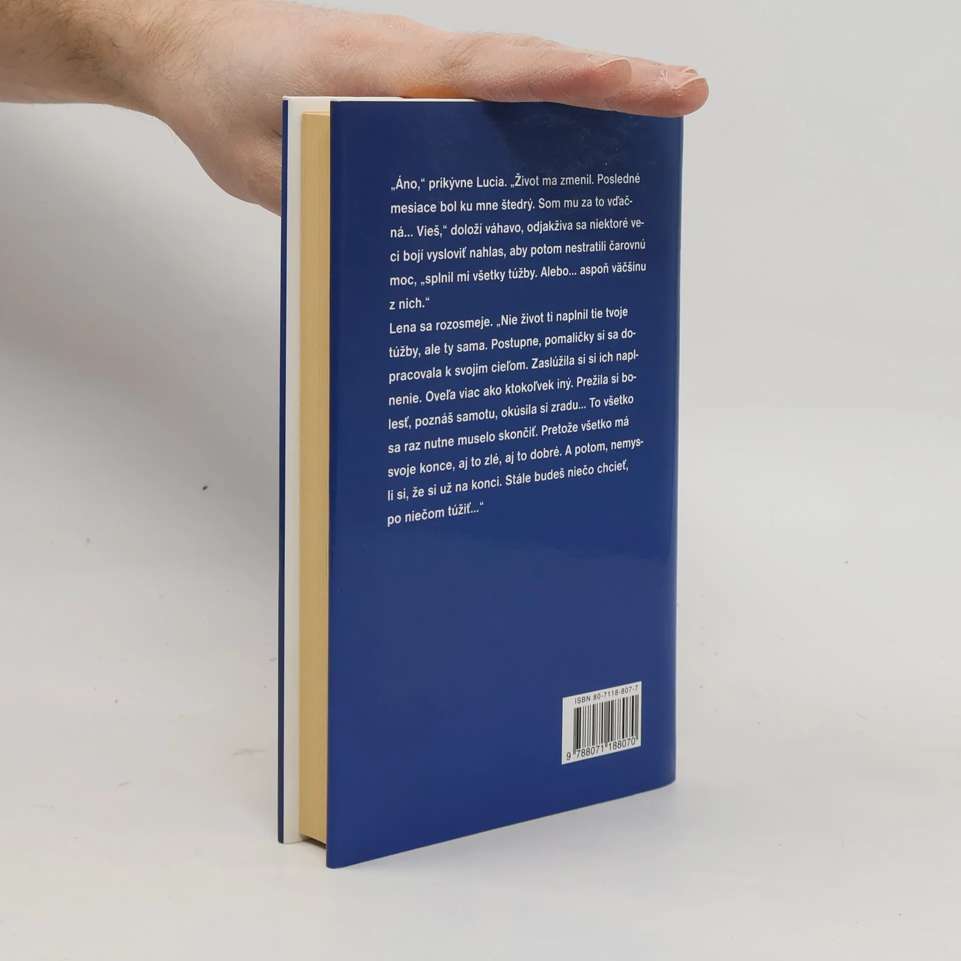 Lucia, hlavná hrdinka románu, je slobodná mamička, ktorej život v podobe neseriózneho partnera uštedril prvú krutú príučku. Hoci má radosť zo svojho synčeka, dobré vzťahy na pracovisku, doma trpí v područí despotickej matky, ktorá akoby jej nechcela dožičiť nijakú radosť zo života. Lucia je unavená z problémov všedných, jednotvárnych dní a už ani nedúfa, že by sa jej mohlo stať niečo pekné. Až jedného dňa odíde na lyžovačku a jej život sa celkom zmení...