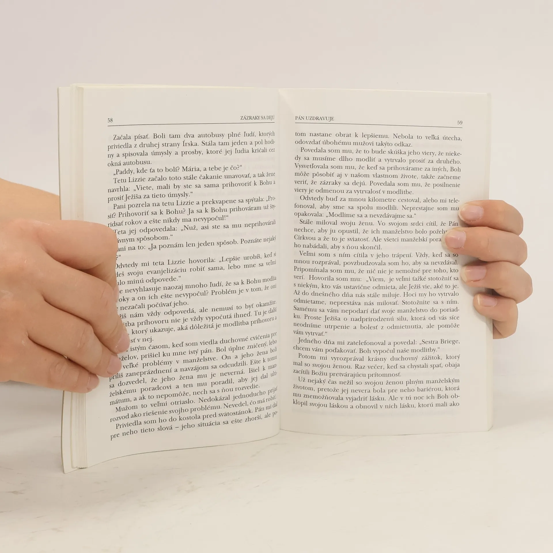 Niektorí ľudia veria na zázraky. Sestra Briege McKenna nielen verí, ale aj vidí, že zázraky sa dejú. Roku 1970 bola zázračne uzdravená z reumatickej artritídy a odvtedy bola svedkom toľkých uzdravení a zázrakov, že si to väčšina kresťanov nedokáže ani predstaviť. Vo svojej uzdravovacej službe precestovala celý svet od Latinskej Ameriky až po Južnú Kóreu. V knižke Zázraky se opravdu dějí sestra Briege opisuje svoje stretnutia s Božou uzdravovacou mocou. Delí sa v nej so svojimi myšlienkami o dôležitosti viery a modlitby, o kňazskej službe, o uzdravovacej moci Eucharistie. Jej knižka ukazuje cestu k užšiemu spoločenstvu s Bohom, k uvedomeniu si jeho lásky a k prehĺbeniu viery, že on môže aj nemožné.