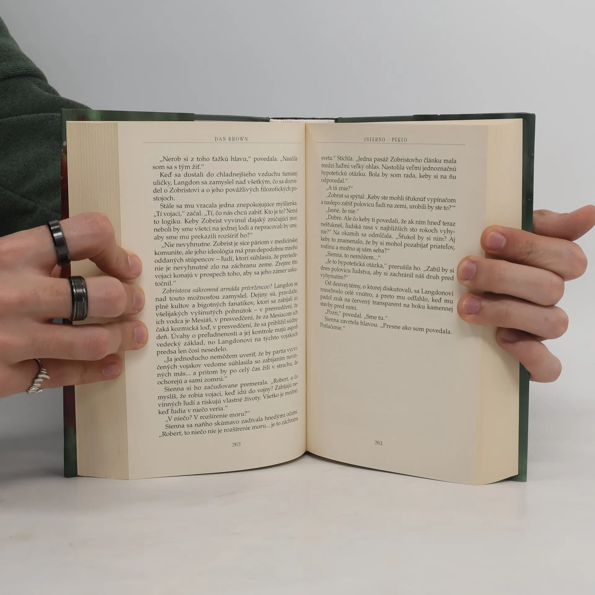 Vzrušujúci život Roberta Langdona pokračuje! Známy a uznávaný symbolista sa tentoraz ocitá v srdci Talianska, kde sa rozpúta napínavé dobrodružstvo okolo jedného z najtajomnejších literárnych diel v histórii. Langdon sa musí postaviť tvárou v tvár súperovi, ktorý ho zavedie do sveta klasického umenia, tajných chodieb a futuristických zbraní. Kľúč na nezodpovedané otázky je skrytý medzi riadkami Danteho Pekla a symbolista sa opäť vrhá do boja s časom, aby odvrátil skazu sveta...