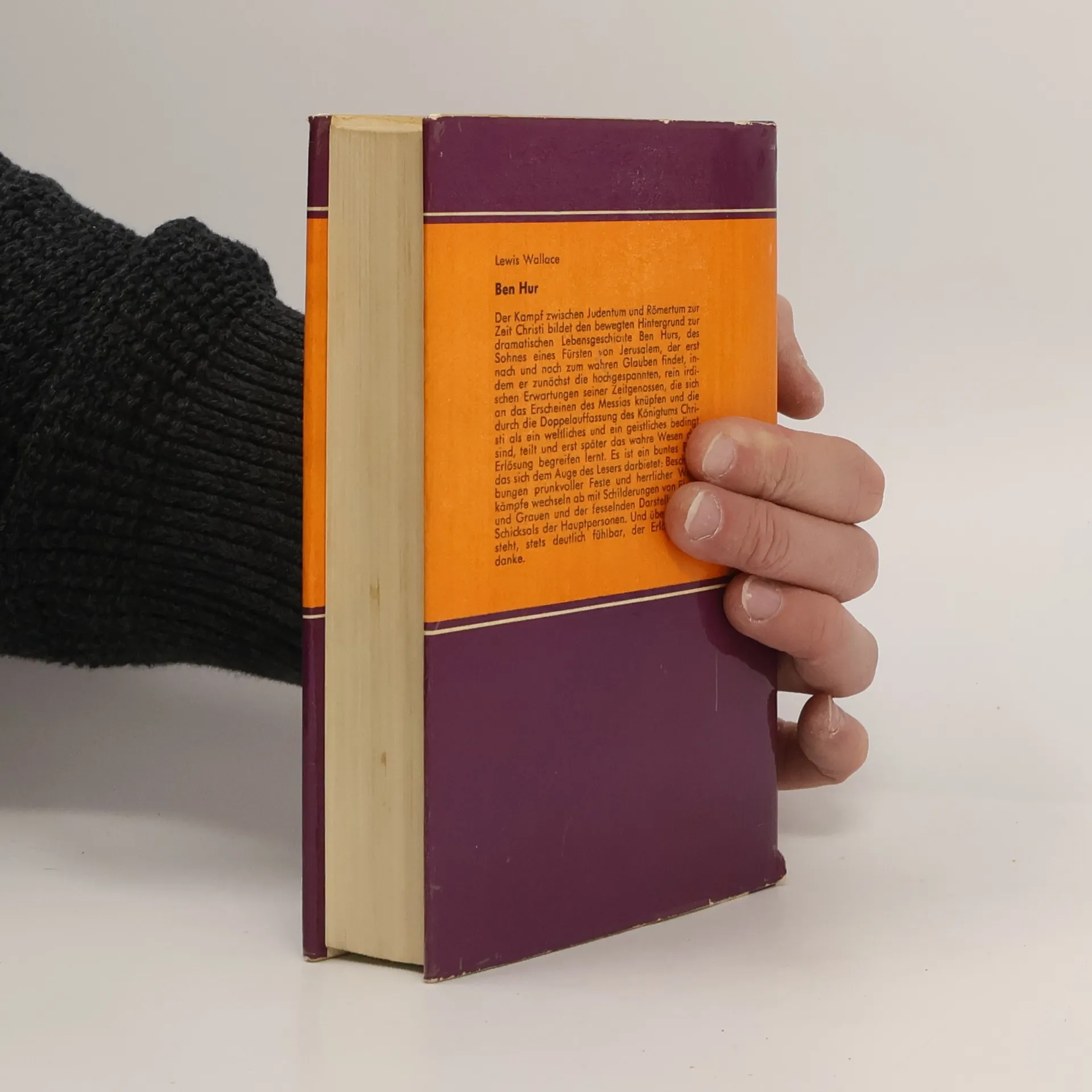 Als der römische Statthalter von Judäa bei seinem Einzug in Jerusalem von einem herabfallenden Ziegelstein lebensgefährlich verletzt wird, verurteilt man den jungen Judah Ben Hur wegen eines angeblichen Attentats, dessen sein einstiger Jugendfreund Messala ihn bezichtigt, zu lebenslangem Galeerendienst. Seine Mutter und seine Schwester werden ins Gefängnis geworfen. Als er einige Jahre später während einer Seeschlacht den Oberbefehlshaber der römischen Flotte vor dem Ertrinken rettet, schenkt dieser ihm die Freiheit. Ben Hur macht sich auf die Suche nach seiner Familie und seinem Widersacher, den er schließlich in einem dramatischen Zweikampf im Wagen-rennen herausfordert. Ben Hur ist eines der meistgelesenen Bücher der Welt. Es führt den Leser in die Zeit Christi und läßt ihn teilhaben am Schicksal des unrechtmäßig zum Galeerendienst verurteilten Judah Ben Hur und seiner Familie.