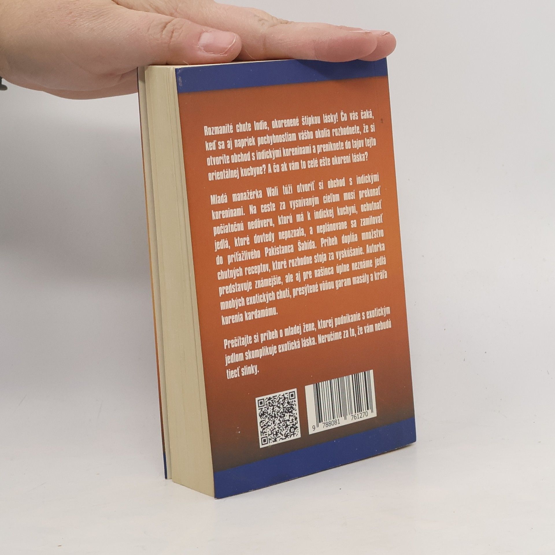 Svieži príbeh plný voňavých receptov, ktoré musíte vyskúšať Príbeh o mladej žene, ktorej podnikanie s exotickým jedlom skomplikuje exotická láska... Neručíme za to, že vám nebudú tiecť slinky :) Rozmanité chute Indie, okorenené štipkou lásky! Čo vás čaká, keď sa aj napriek pochybnostiam vášho okolia rozhodnete, že si otvoríte obchod s indickými koreninami a preniknete do tajov tejto orientálnej kuchyne? A čo ak vám to celé ešte okorení láska? Mladá manažérka Wali túži otvoriť si obchod s indickými koreninami. Na ceste za vysnívaným cieľom musí prekonať počiatočnú nedôveru, ktorú má k indickej kuchyni, ochutnať jedlá, ktoré dovtedy nepoznala, a neplánovane sa zamilovať do príťažlivého Pakistanca Šahída. Príbeh dopĺňa množstvo chutných receptov, ktoré rozhodne stoja za vyskúšanie. Autorka predstavuje známejšie, ale aj pre našinca úplne neznáme jedlá mnohých exotických chutí, presýtené vôňou garam masály a kráľa korenia kardamómu.