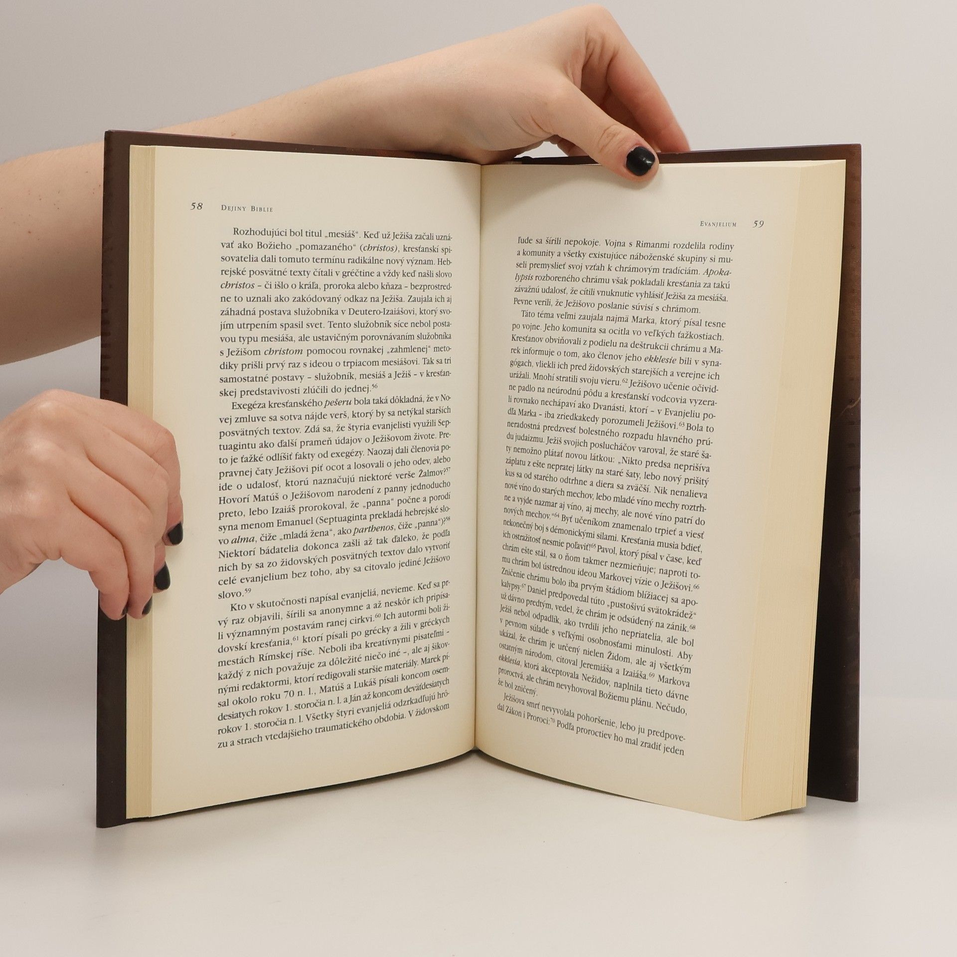 Od ústnej tradície do súčasnosti Biblie, v ktorej sa Boh nazýva striedavo "Jahve" a "Elohim". Sleduje vývoj tak hebrejskej Biblie, ako aj Novej zmluvy, aby poukázala na rôznorodé vplyvy, ktoré pomáhali pri formovaní týchto posvätných textov. Vychádzajúc zo židovského vyznávania midrašu a kresťanského kultu Ježiša a pokračujúc vplyvom Pavlových listov na reformáciu a manipuláciou Zjavení zo strany kresťanských fundamentalistov, autorka približuje kontexty, v akých treba rozumieť a vysvetľovať týchto šesťdesiat šesť kníh, objasňuje tiež sociálne potreby, na ktoré knihy reagujú. Súčasne poukazuje na nekompetentné a paradoxné postupy, ktoré neprestajne ovplyvňujú naše chápanie Biblie.Biblie, v ktorej sa Boh nazýva striedavo "Jahve" a "Elohim". Sleduje vývoj tak hebrejskej Biblie, ako aj Novej zmluvy, aby poukázala na rôznorodé vplyvy, ktoré pomáhali pri formovaní týchto posvätných textov. Vychádzajúc zo židovského vyznávania midrašu a kresťanského kultu Ježiša a pokračujúc vplyvom Pavlových listov na reformáciu a manipuláciou Zjavení zo strany kresťanských fundamentalistov, autorka približuje kontexty, v akých treba rozumieť a vysvetľovať týchto šesťdesiat šesť kníh, objasňuje tiež sociálne potreby, na ktoré knihy reagujú. Súčasne poukazuje na nekompetentné a paradoxné postupy, ktoré neprestajne ovplyvňujú naše chápanie Biblie.