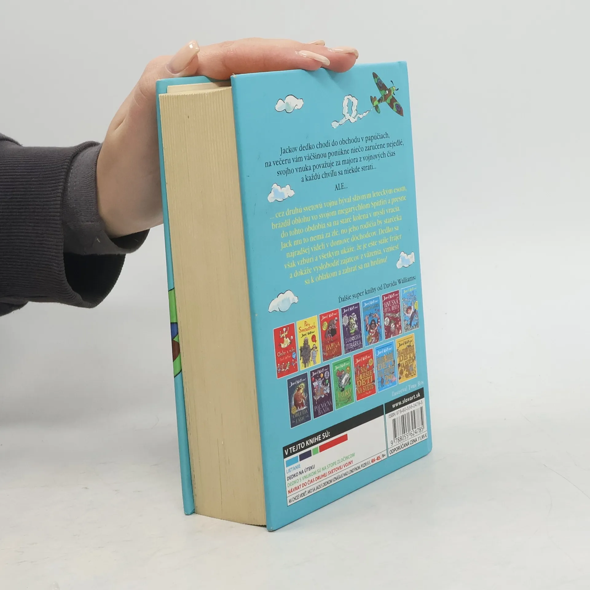 Ďalšia kniha od svetoznámeho britského komika a autora detských kníh Davida Walliamsa je príbehom chlapca, ktorého dedko sa určite vyrovná aj babke gaunerke. Jackov dedko totiž síce chodí do obchodu v papučiach, na večeru vám väčšinou ponúkne niečo fakt podozrivé z ešte podozrivejšej konzervy a často si nespomenie ani na meno vlastného vnuka, ale ešte stále si dokáže sadnúť do lietadla, vzniesť sa k oblakom a zahrať sa na hrdinu! Pridajte sa k Jackovi a jeho dedkovi a prežite s nimi vzrušujúci let nad Londýnom vo svete plnom snov a nebezpečných dobrodružstiev.