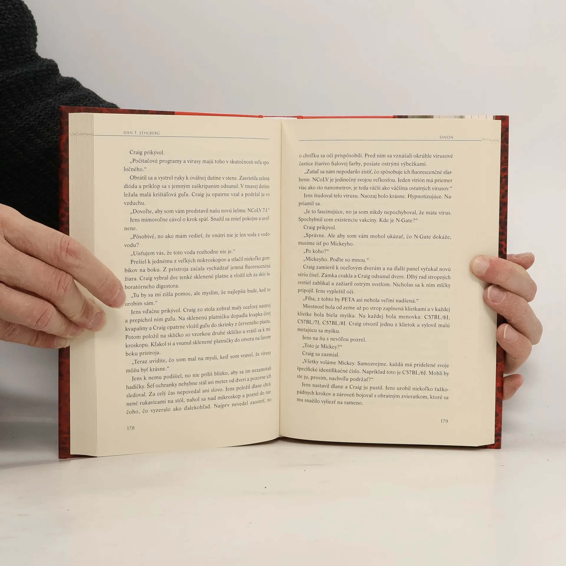 Niekoľko pacientov štokholmskej nemocnice je v kritickom stave. Nakazili sa neznámym, no veľmi zákerným vírusom nazvaným NCoLV. Jediná osoba, ktorá sa dosiaľ uzdravila, je Hanna, manželka profesora informatiky Erica Söderqvista. Na vývoji vakcíny pracuje súkromná farmaceutická spoločnosť Cryonordic a tá vyhlasuje, že vakcínu má na dosah ruky. Nevyhnutne však potrebuje Hanninu krv. Eric je na pochybách. Má dôvodné podozrenie, že spoločnosť je napojená na teroristickú skupinu. Akim Katz, známy pod krycím menom Sinon, sa nachádza v izraelskom väzení. Predtým, než ho tajná služba odhalila ako špióna Hizballáhu, pôsobil ako najbližší poradca izraelského premiéra. Keď sa za dramatických okolností dostane na slobodu, financovateľ Cryonordicu ho poverí tajnou úlohou. Túžba po pomste je však silnejšia než peniaze a Sinon zmení pôvodný plán. Ocitne sa svet na pokraji zhubnej pandémie? Eric postupne zisťuje, že jeho milovaná Hanna je vo vážnom nebezpečenstve a jediný človek, ktorý by ju podľa neho mohol ochrániť, je agentka Mossadu Rachel Papo. Eric však nevie, že jej chladnokrvnosť nepozná hraníc, a keby len tušil, čie príkazy teraz plní, nikdy by s ňou Hannu nenechal osamote. Román Sinon je voľným pokračovaním excelentného debutu švédskeho spisovateľa Dana T. Sehlberga Mona.