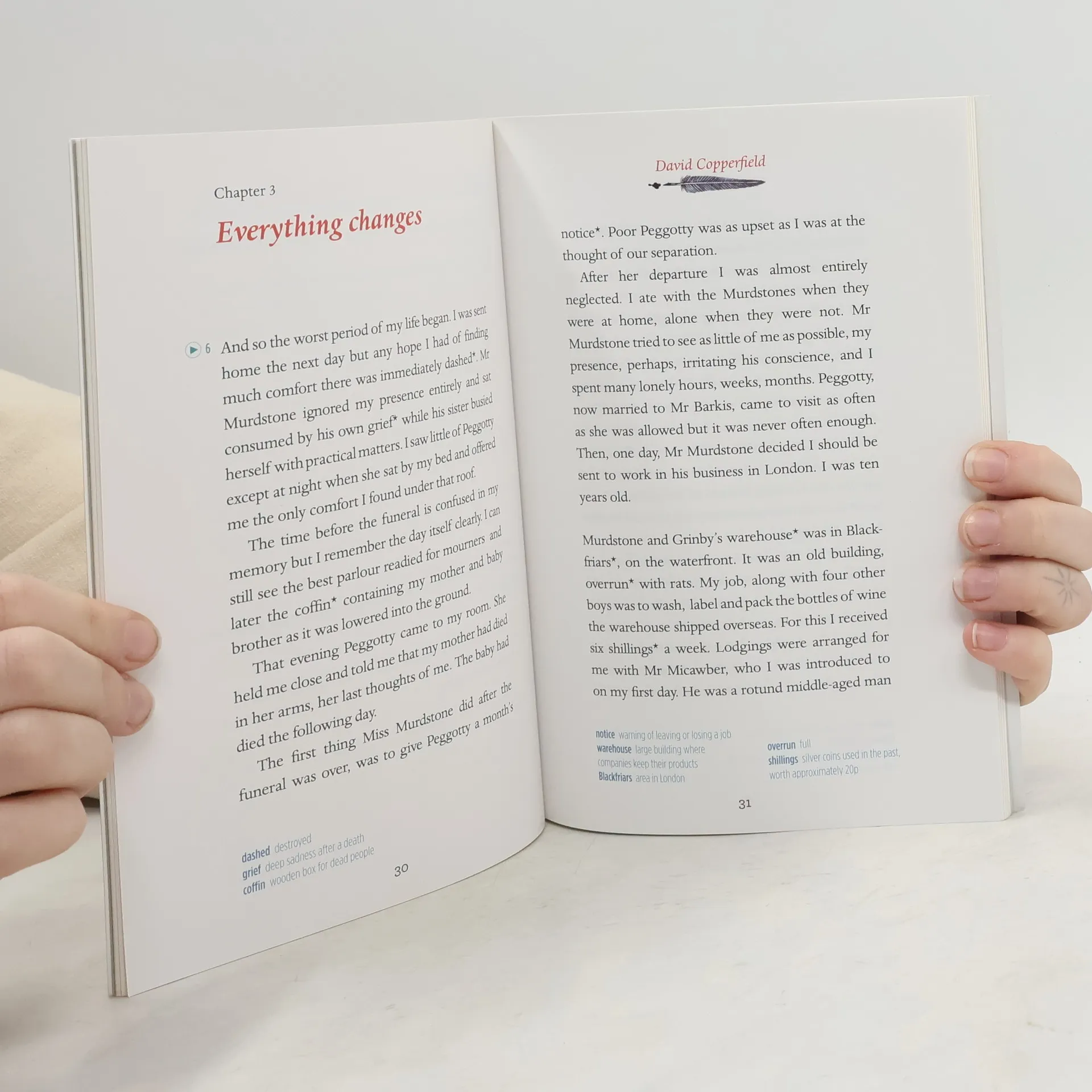 The story traces the life of David Copperfield from childhood to maturity. In this Reader you will information about Charles Dickens Tags Family Friendship Love Adventure David Copperfield looks back on the first twenty-five years of his life. He is only eight years old when his mother, a young pretty widow, remarries. Unfortunately Mr Murdstone is not a good husband or father. David is sent away to school and only returns home when tragedy strikes. Unloved and unwanted, he is sent to work in a factory. But David is a resourceful boy and determines to find a better life for himself.