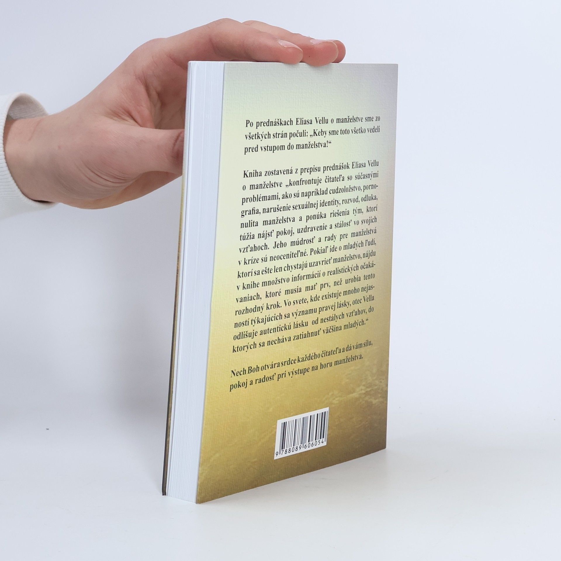 Po prednáškach Eliasa Vellu o manželstve sme zo všetkých strán počuli: „Keby sme toto všetko vedeli pred vstupom do manželstva!“ Kniha zostavená z prepisu prednášok Eliasa Vellu o manželstve "konfrontuje čitateľa so súčasnými problémami, ako sú napríklad cudzoložstvo, pornografia, narušenie sexuálnej identity, rozvod, odluka, nulita manželstva a ponúka riešenia tým, ktorí túžia nájsť pokoj, uzdravenie a stálosť vo svojich vzťahoch. Jeho múdrosť a rady pre manželstvá v kríze sú neoceniteľné. Pokiaľ ide o mladých ľudí, ktorí sa ešte len chystajú uzavrieť manželstvo, nájdu v knihe množstvo informácií o realistických očakávaniach, ktoré musia mať prv, než urobia tento rozhodný krok. Vo svete, kde existuje mnoho nejasností týkajúcich sa významu pravej lásky, otec Vella odlišuje autentickú lásku od nestálych vzťahov, do ktorých sa necháva zatiahnuť väčšina mladých.“ Prvé vydanie