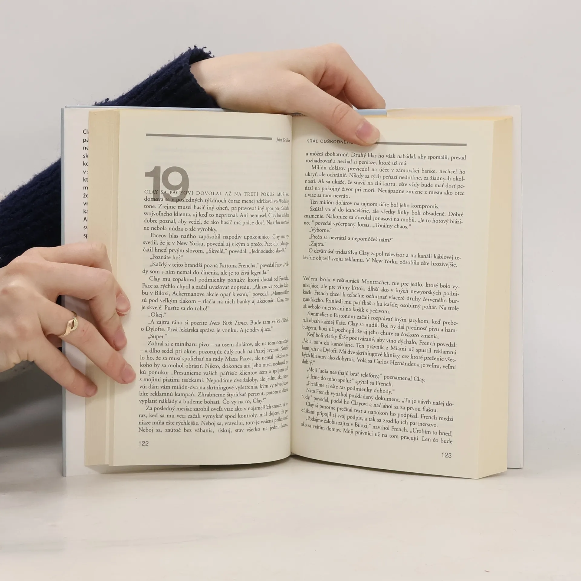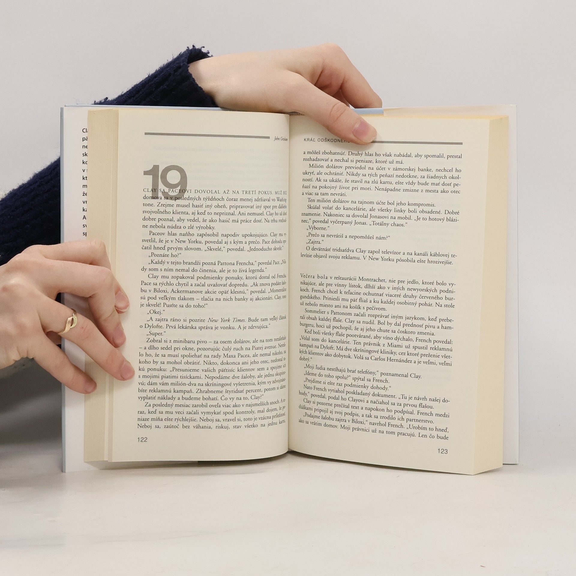 Clay Carter má tridsaťjeden rokov a už päť rokov pracuje ako verejný obhajca nemajetných klientov na washingtonskom najvyššom súde. Ako väčšina jeho kolegov aj on sníva o lepšej práci v skutočnej firme. Súd mu pridelí klienta, ktorý z ničoho nič na ulici zavraždí mladého človeka. Clay predpokladá, že ide o jednu z ďalších nezmyselných vrážd, ktoré sa vo Washingtone stávajú každý týždeň. Ako sa však dostáva hlbšie do minulosti svojho klienta, naráža na hrozivé sprisahanie. Náhle sa ocitne uprostred komplikovaného prípadu proti jednej z najväčších farmaceutických firiem na svete, ktorý úplne zmení jeho život a takmer okamžite z neho spraví nového kráľa odškodného..