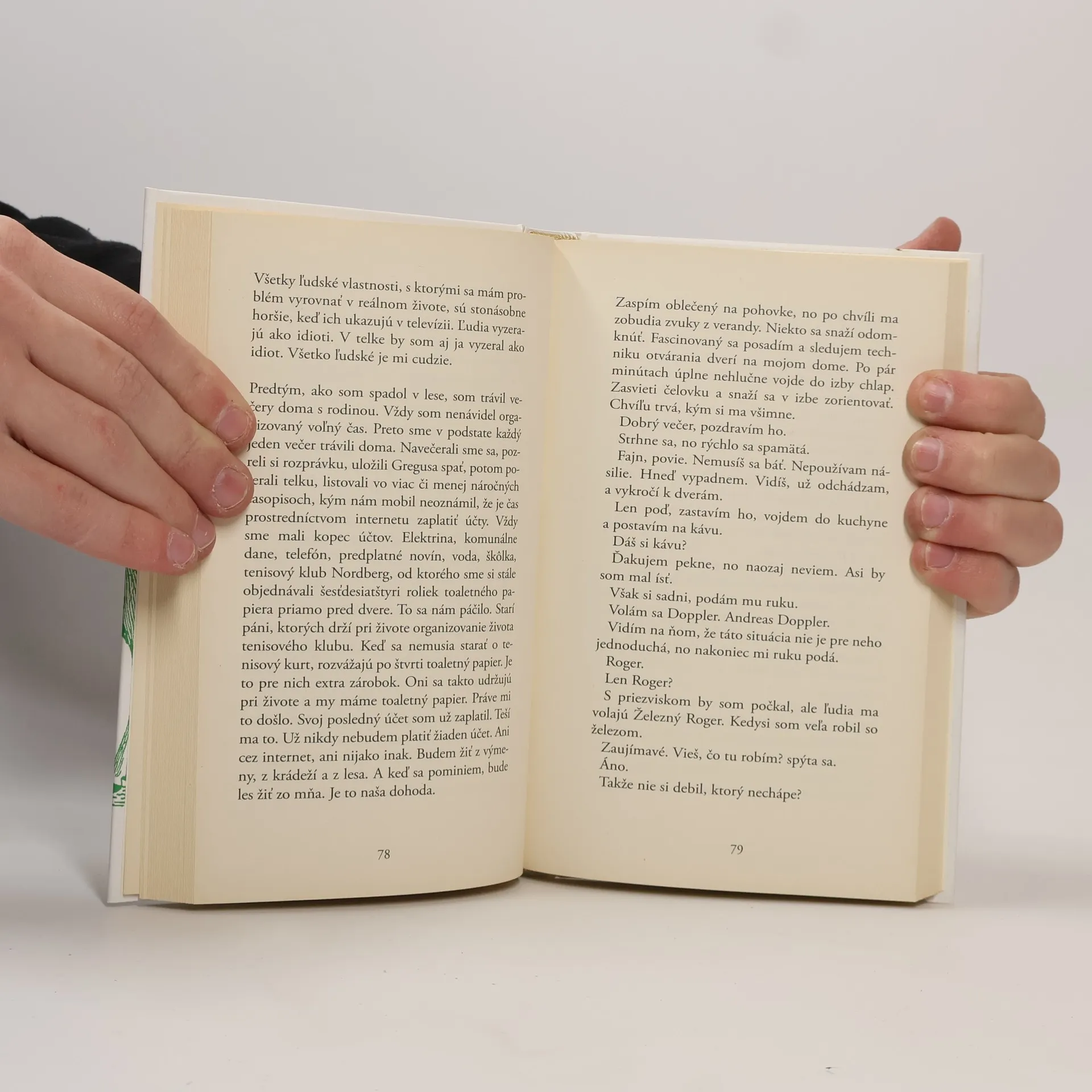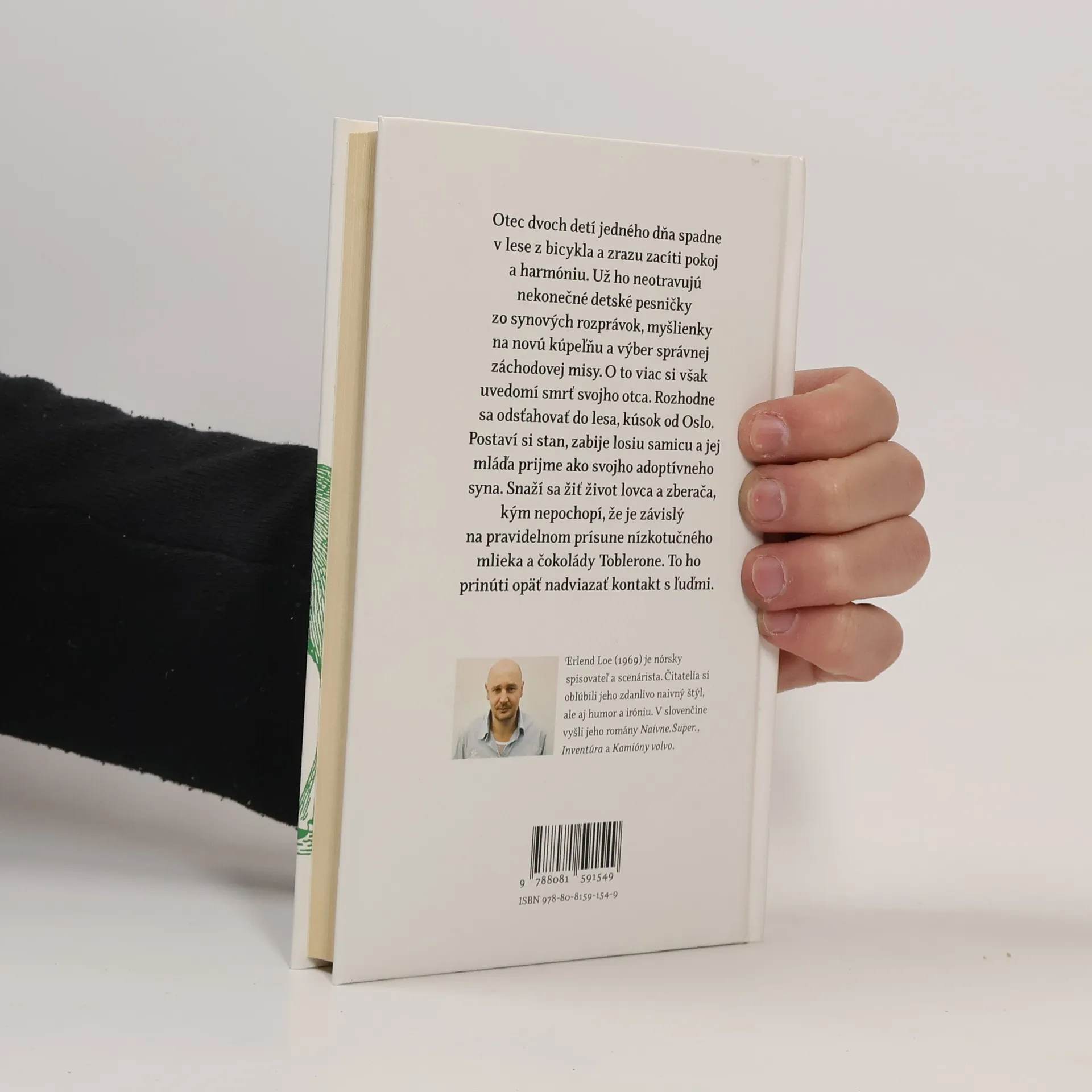 Otec dvoch detí jedného dňa spadne v lese z bicykla a zrazu zacíti pokoj a harmóniu. Už ho neotravujú nekonečné detské pesničky zo synových rozprávok, myšlienky na novú kúpeľňu a výber správnej záchodovej misy. O to viac si však uvedomí smrť svojho otca. Rozhodne sa odsťahovať do lesa, kúsok od Oslo. Postaví si stan, zabije losiu samicu a jej mláďa prijme ako svojho adoptívneho syna. Snaží sa žiť život lovca a zberača, kým nepochopí, že je závislý na pravidelnom prísune nízkotučného mlieka a čokolády Toblerone. To ho prinúti opäť nadviazať kontakt s ľuďmi. Jeden z najprekladanejších nórskych autorov sa stal populárnym vďaka humorným a niekedy naivným románom, hoci sa v jeho príbehoch časom objavili aj temnejšie tóny a príklon k satirickej kritike nórskej spoločnosti. Pracoval na psychiatrickej klinike a v novinách, je autorom kníh pre deti aj pre dospelých. Tieto svety sa v jeho knihách prelínajú, problém dospieť majú najmä mužské postavy.