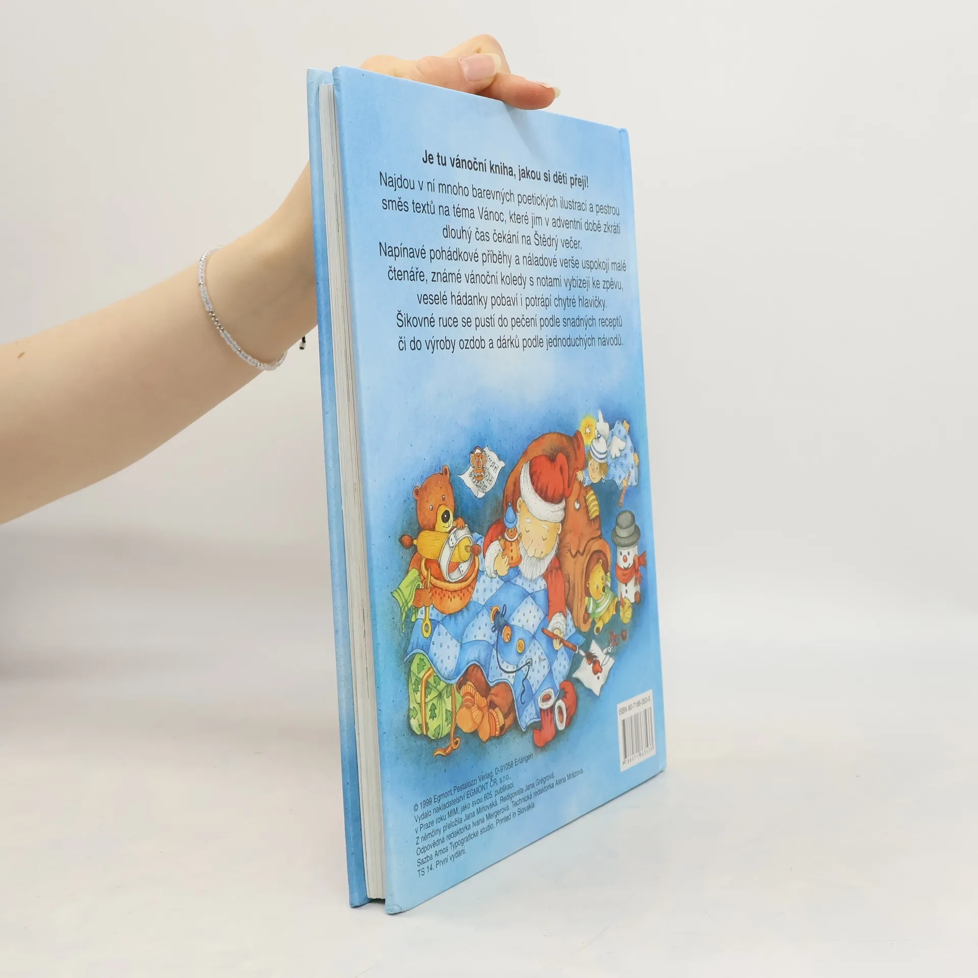 Je tu vánoční kniha, jakou si děti přejí! Najdou zde mnoho barevných ilustrací a pestrou směs textů na téma Vánoc, které jim v adventní době zkrátí čekání. Napínavé pohádkové příběhy a náladové verše uspokojí malé čtenáře, známé vánoční koledy s notami vybízejí ke zpěvu, veselé hádanky pobaví i potrápí chytré hlavičky. Šikovné ruce se pustí do pečení podle snadných receptů či do výroby ozdob a dárků podle jednoduchých návodů.