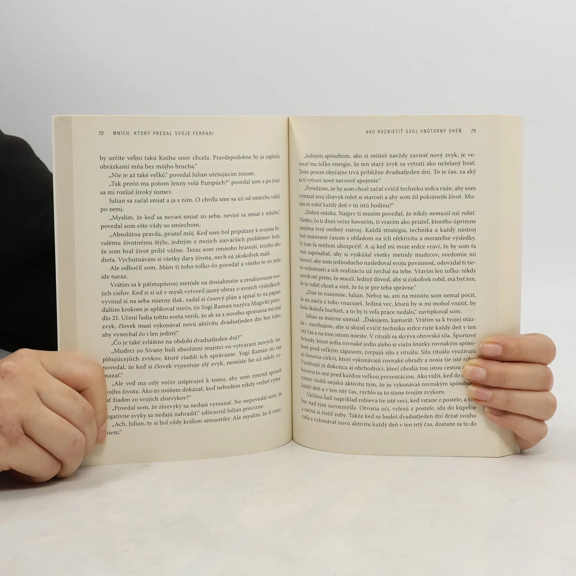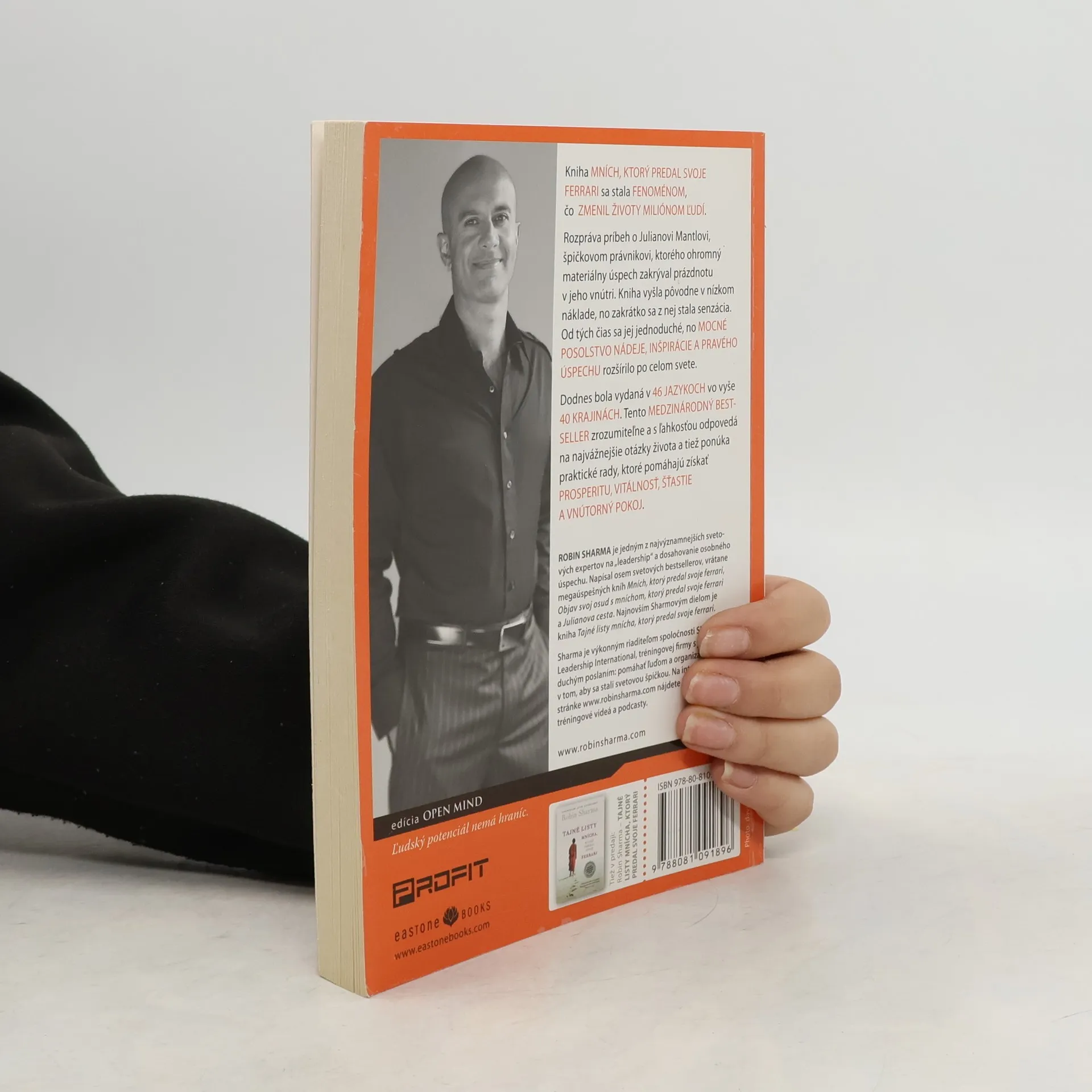 Mních, ktorý predal svoje Ferrari, je kniha, ktorá sa stala fenoménom. Vyšla pred desiatimi rokmi a odvtedy zmenila miliónom ľudí život. Rozpráva príbeh o Julianovi Mantlovi, špičkovom právnikovi, ktorého ohromný materiálny úspech zakrýval prázdnotu v jeho vnútri. Kniha vyšla pôvodne v nízkom náklade, no zakrátko sa z nej stala senzácia. Od tých čias sa jej jednoduché, no mocné posolstvo nádeje, inšpirácie a pravého úspechu rozšírilo po celom svete. Dodnes bola vydaná v 46 jazykoch vo vyše 40 krajinách. Tento medzinárodný bestseller zrozumiteľne a s ľahkosťou odpovedá na najvážnejšie otázky života a tiež ponúka praktické rady, ktoré pomáhajú získať prosperitu, vitálnosť, šťastie a vnútorný pokoj.