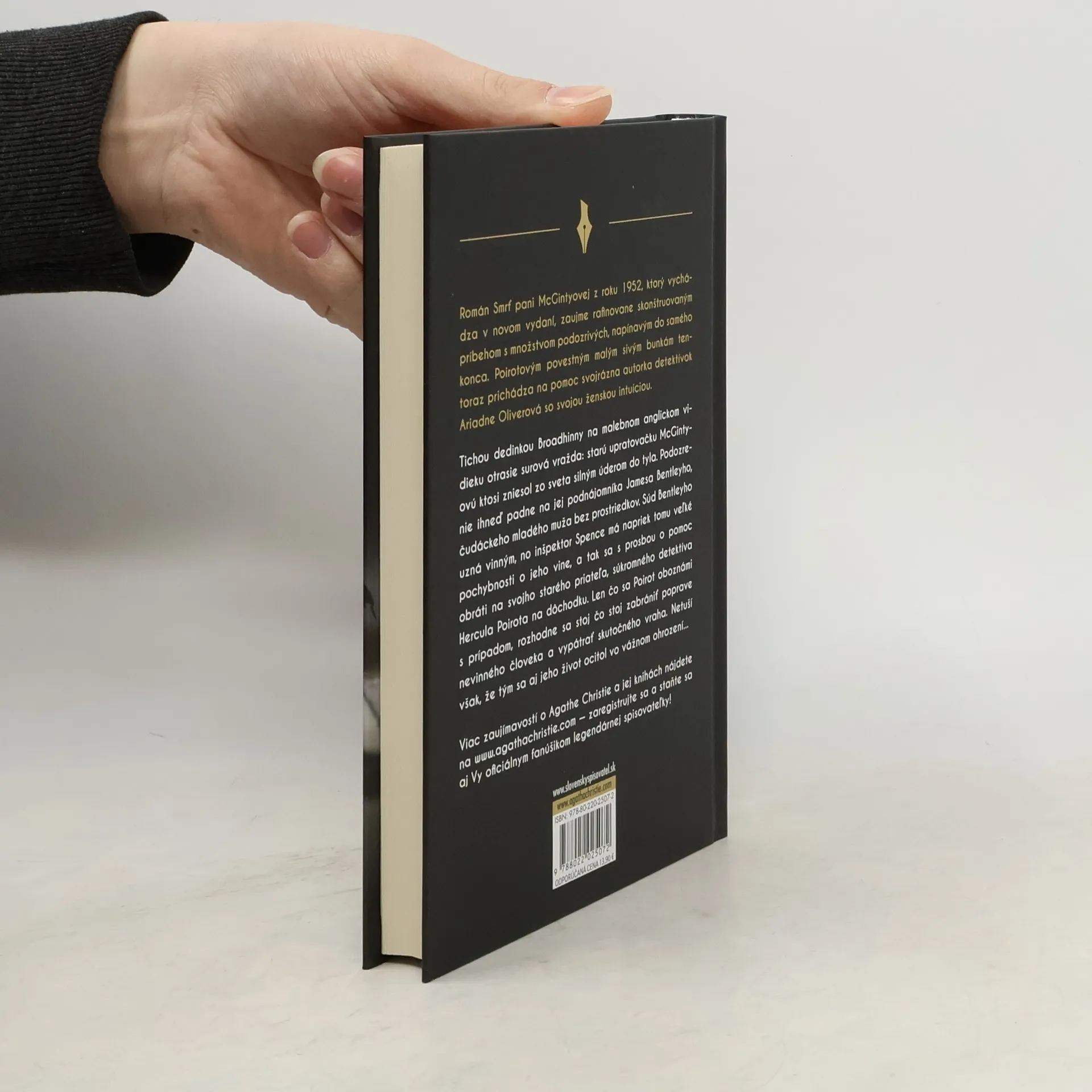 Román Smrť pani McGintyovej z roku 1952, ktorý vychádza v novom vydaní, zaujme rafinovane skonštruovaným príbehom s množstvom podozrivých, napínavým do samého konca. Poirotovým povestným malým sivým bunkám tentoraz prichádza na pomoc svojrázna autorka detektívok Ariadne Oliverová so svojou ženskou intuíciou. Tichou dedinkou Broadhinny na malebnom anglickom vidieku otrasie surová vražda: starú upratovačku McGintyovú ktosi zniesol zo sveta silným úderom do tyla. Podozrenie ihneď padne na jej podnájomníka Jamesa Bentleyho, čudáckeho mladého muža bez prostriedkov. Súd Bentleyho uzná vinným, no inšpektor Spence má napriek tomu veľké pochybnosti o jeho vine, a tak sa s prosbou o pomoc obráti na svojho starého priateľa, súkromného detektíva Hercula Poirota na dôchodku. Len čo sa Poirot oboznámi s prípadom, rozhodne sa stoj čo stoj zabrániť poprave nevinného človeka a vypátrať skutočného vraha. Netuší však, že tým sa aj jeho život ocitol vo vážnom ohrození...