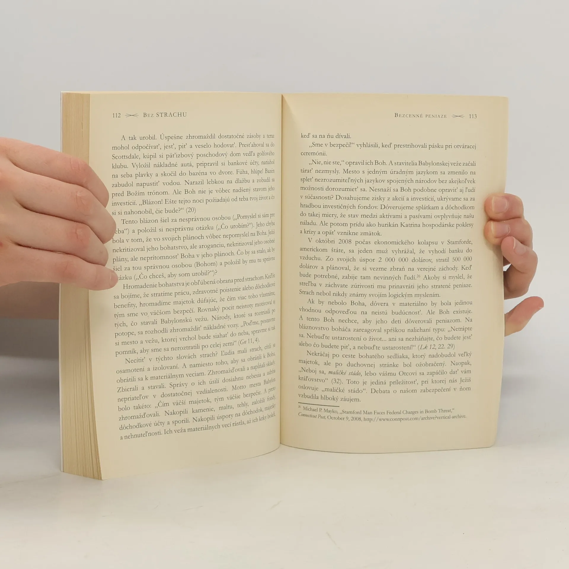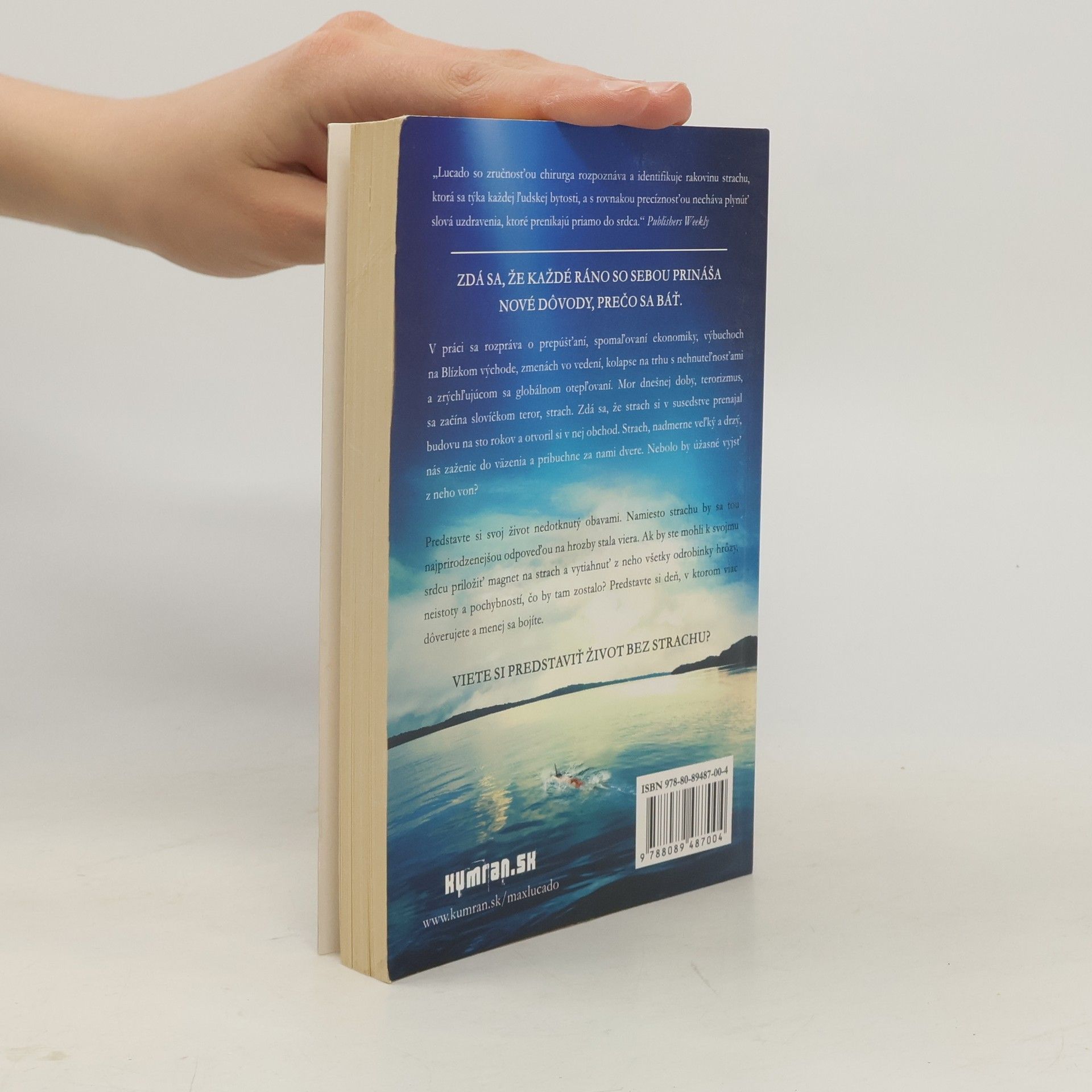 V práci sa rozpráva o prepúšťaní, spomaľovaní ekonomiky, výbuchoch na Blízkom východe, zmenách vo vedení, kolapse na trhu s nehnuteľnosťami a zrýchľujúcom sa globálnom otepľovaní. Mor dnešnej doby, terorizmus, sa začína slovíčkom teror, strach. Zdá sa, že strach si v susedstve prenajal budovu na sto rokov a otvoril si v nej obchod. Strach, nadmerne veľký a drzý, nás zaženie do väzenia a pribuchne za nami dvere. Nebolo by úžasné vyjsť z neho von? Predstavte si svoj život nedotknutý obavami. Namiesto strachu by sa tou najprirodzenejšou odpoveďou na hrozby sveta stala viera. Ak by ste mohli k svojmu srdcu priložiť magnet na strach a vytiahnuť z neho všetky odrobinky hrôzy, neistoty a pochybností, čo by tam zostalo? Predstavte si deň, v ktorom viac dôverujete a menej sa bojíte. VIETE SI PREDSTAVIŤ ŽIVOT BEZ STRACHU? „Lucado so zručnosťou chirurga rozpoznáva a identifikuje rakovinu strachu, ktorá sa týka každej ľudskej bytosti, a s rovnakou precíznosťou necháva plynúť slová uzdravenia, ktoré prenikajú priamo do srdca.“ Publishers Weekly