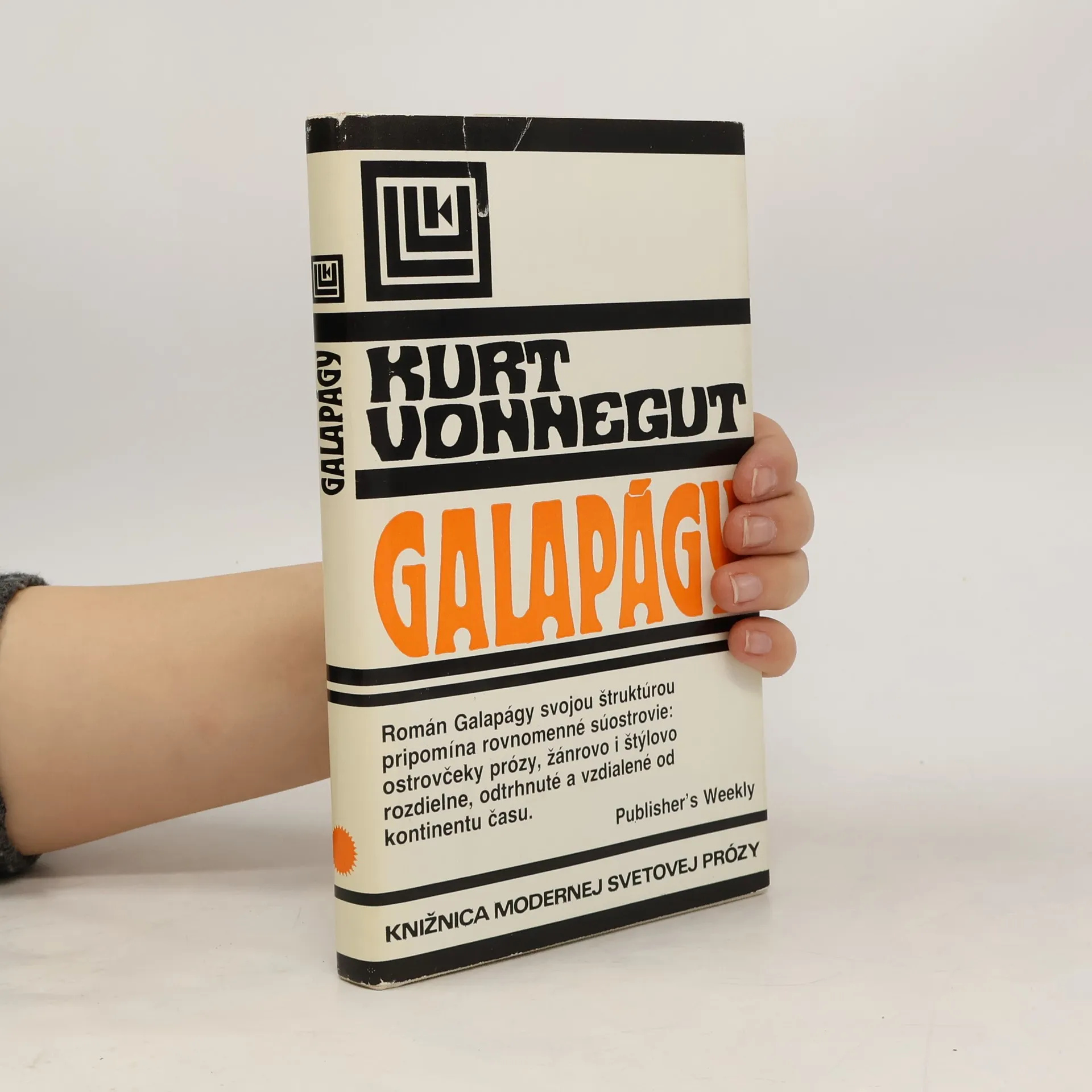 Popredný americký spisovateľ Kurt Vonnegut sa slovenským čitateľom po prvý raz predstavil svojím bestsellerom Bitúnok č. 5, ktorý vyšiel v tejto istej edícii roku 1973. Román Galapágy, jeho najnovší literárny triumf, naznačuje, kam môžu vyústiť pálčivé problémy súčasnosti. Rozprávač- duch nebohého Američana, ktorý milión rokov pozorne sledoval osudy ľudského rodu - spomína na „dávne“ udalosti roku 1986, na dávno minulú „éru veľkých mozgov“. Vtedy ľudia využívali svoj intelekt na podvody, vymýšľanie ukrutností a klamlivých ilúzií. Najväčšej chyby sa však dopustili, keď vo svojej nedomyslenej chamtivosti dopustili ďalekosiahlu devastáciu prírody. Ľudstvo takmer vyhynulo, no súhrou náhod sa zachovala neveľká ľudská kolónia, izolovaná na súostroví Galapágy. Daň, ktorú ľudstvo muselo zaplatiť za prežitie, bola nesmierne vysoká... Vonnegutove satirické šľahy sú presné, účinné a nemilosrdné. Veď nebezpečenstvo sebazničenia, ohrozujúce ľudstvo, je ešte vždy aktuálne.