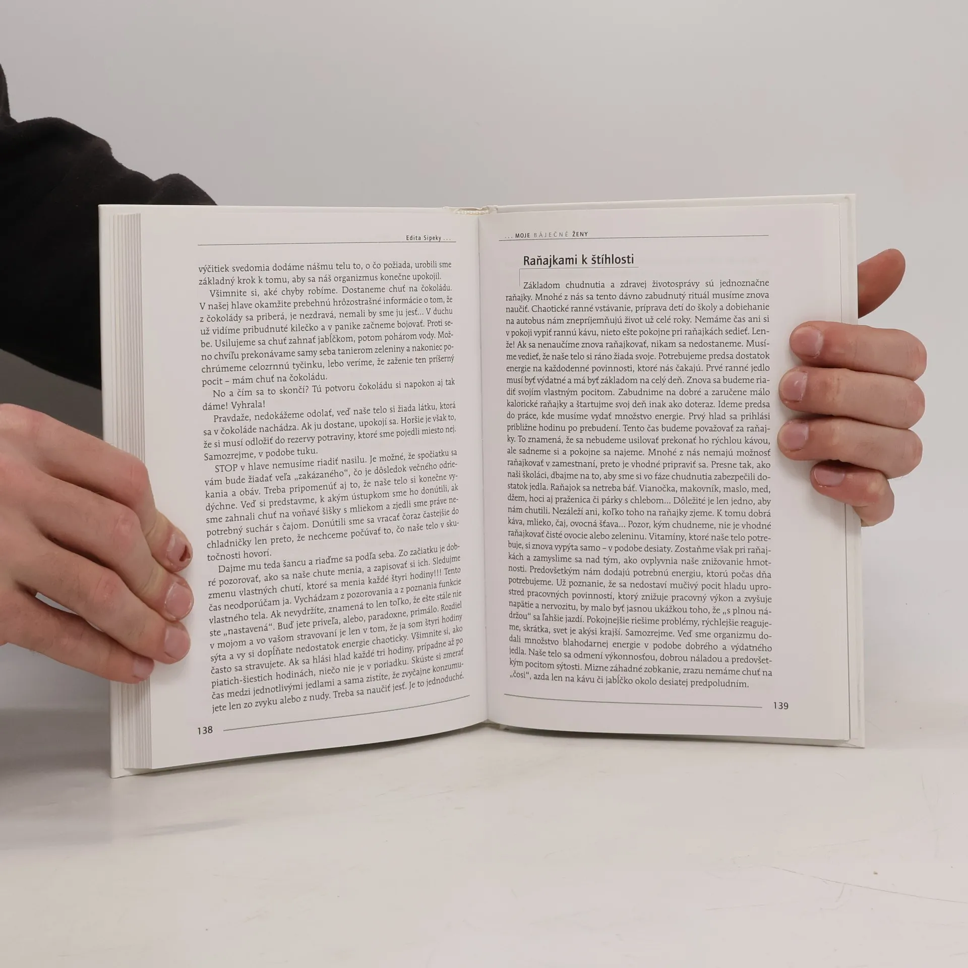 Autorka podrobnejšie vysvetľuje, ako správne a najmä „bezbolestne“ chudnúť, či má význam cvičiť, a keď áno, aké cviky sú pre ženy najvhodnejšie, čo robiť, aby sme si udržali nielen peknú, svižnú postavu, ale i duševnú pohodu. Edita Sipeky má zriedkavý dar vyhmatať a pofúkať boliestky žien. Poradí, ako sa správať k obéznej dcére v tom najháklivejšom veku, učí vážiť si rodinné zázemie, ale i bojovať o svoje záujmy a vedieť si ich v rodine presadiť. Aj tentoraz autorka odpovedá na najčastejšie otázky, ktoré jej čitateľky kladú, a ktoré ženy najväčšmi trápia.