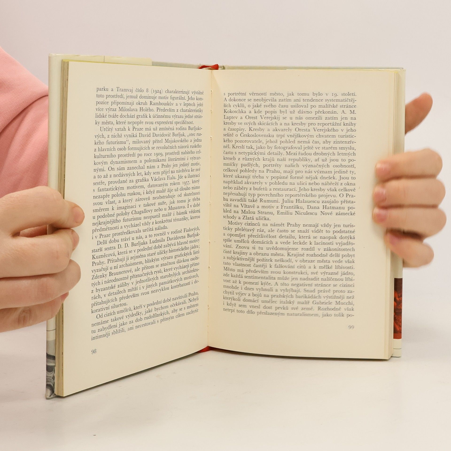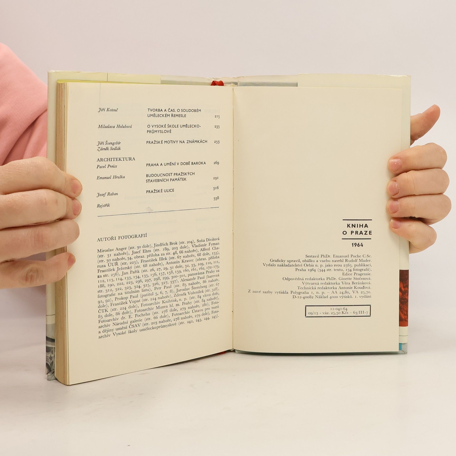 Naši přední odborníci popisují s hlubokou znalostí, přitom však prostě a zajímavě jak výtvarná díla v Praze, tak výtvarná díla o Praze. Kniha má kouzelnou vlastnost: Aniž čtenář vykročil z Prahy, zhlédne díla velkých evropských umělců od středověku po dnešek, díla, jejichž cenu nelze vyjádřit v penězích, díla, jež jsou jedinečná a nenehraditelná. Jsou zde mj. reprodukovaná díla, která vytvořil Rubens, Aachen, Veronese, Tintoretto, Bassano, Dürer, Brueghel st., Rembrandt, Braun, mistři české gotiky, Brandl, Škréta, Prachner, ale také velcí Francouzi 19. století. Podívejte se, jak malovali Prahu staří mistři a jak umělci dnešní, zhlédněte novýma očima pražské pomníky, pozorujte s mladým fotografem návštěvnice pražských galerií a navštivte mladé umělce v jejich ateliérech. Na závěr knihy se představí Praha na poštovních známkách. Obsahuje 134 fotografií.