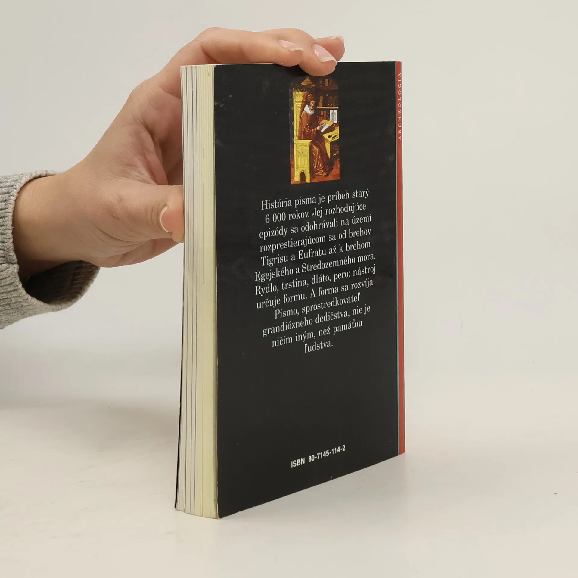 História písma je príbeh starý 6000 rokov. Jej rozhodujúce epizódy sa odohrávali na území rozprestierajúcom sa od brehov Tigrisu a Eufratu až k brehom Egejského a Stredozemného mora. Rydlo, trstina, dláto, pero: nástroj určuje formu. A forma sa rozvíja. Písmo, sprostredkovateľ grandiózneho dedičstva, nie je ničím iným, než pamäťou ľudstva.