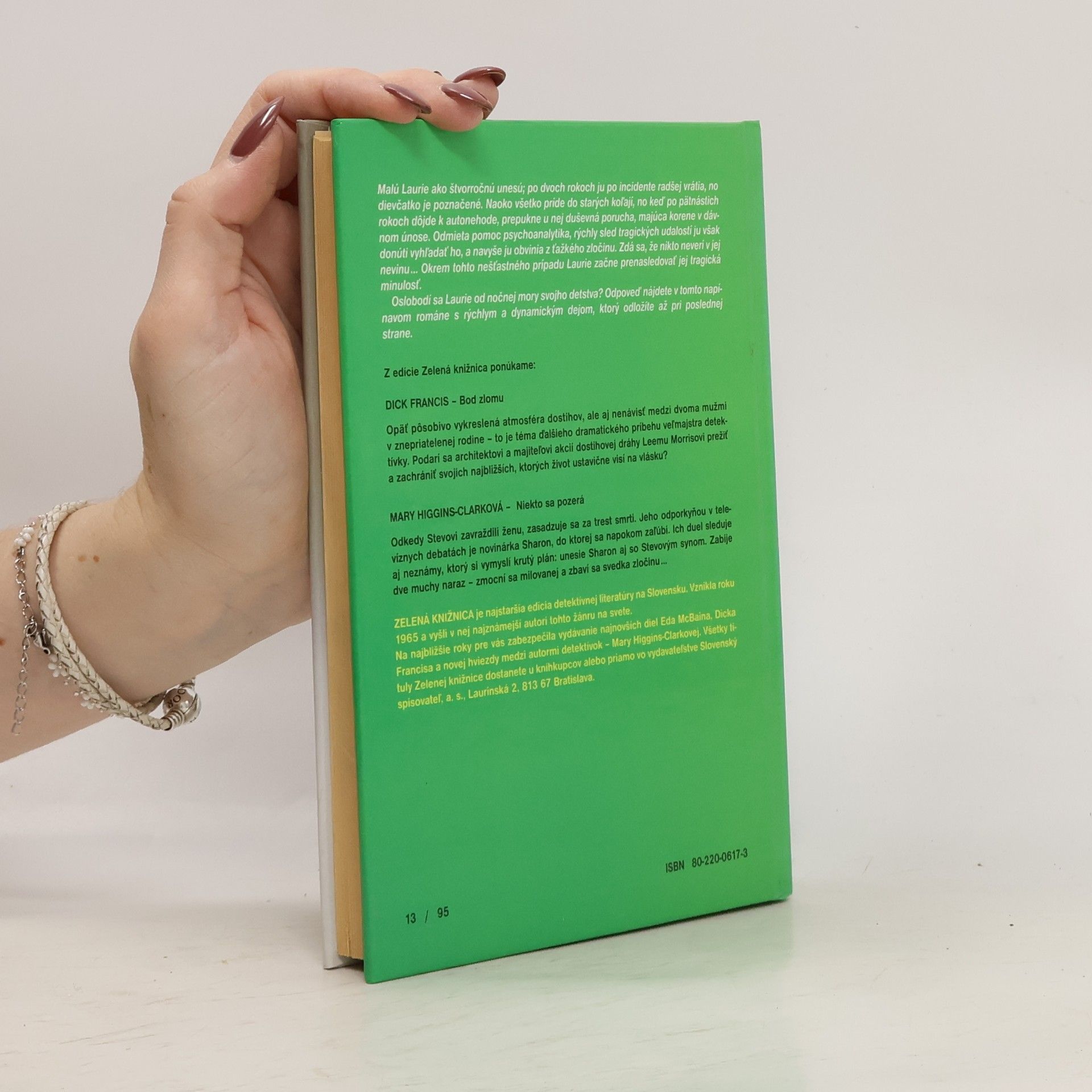 Malú Laurie ako štvorročnú unesú a po dvoch rokoch ju po incidente radšej vrátia, no dievčatko je poznačené. Naoko všetko príde do starých koľají, no keď po pätnástich rokoch dôjde k autonehode, prepukne u nej duševná porucha, majúca korene v dávnom únose. Odmieta pomoc psychoanalytika, rýchly sled tragických udalostí ju však donúti vyhľadať ho, a navyše ju obvinia z ťažkého zločinu. Zdá sa, že nikto neverí v jej nevinu... Okrem tohto nešťastného prípadu Laurie začne prenasledovať jej tragická minulosť. Oslobodí sa Laurie od nočnej mory svojho detstva ? Odpoveď nájdete v tomto napínavom románe s rýchlym a dynamickým dejom, ktorý odložíte až pri poslednej strane.