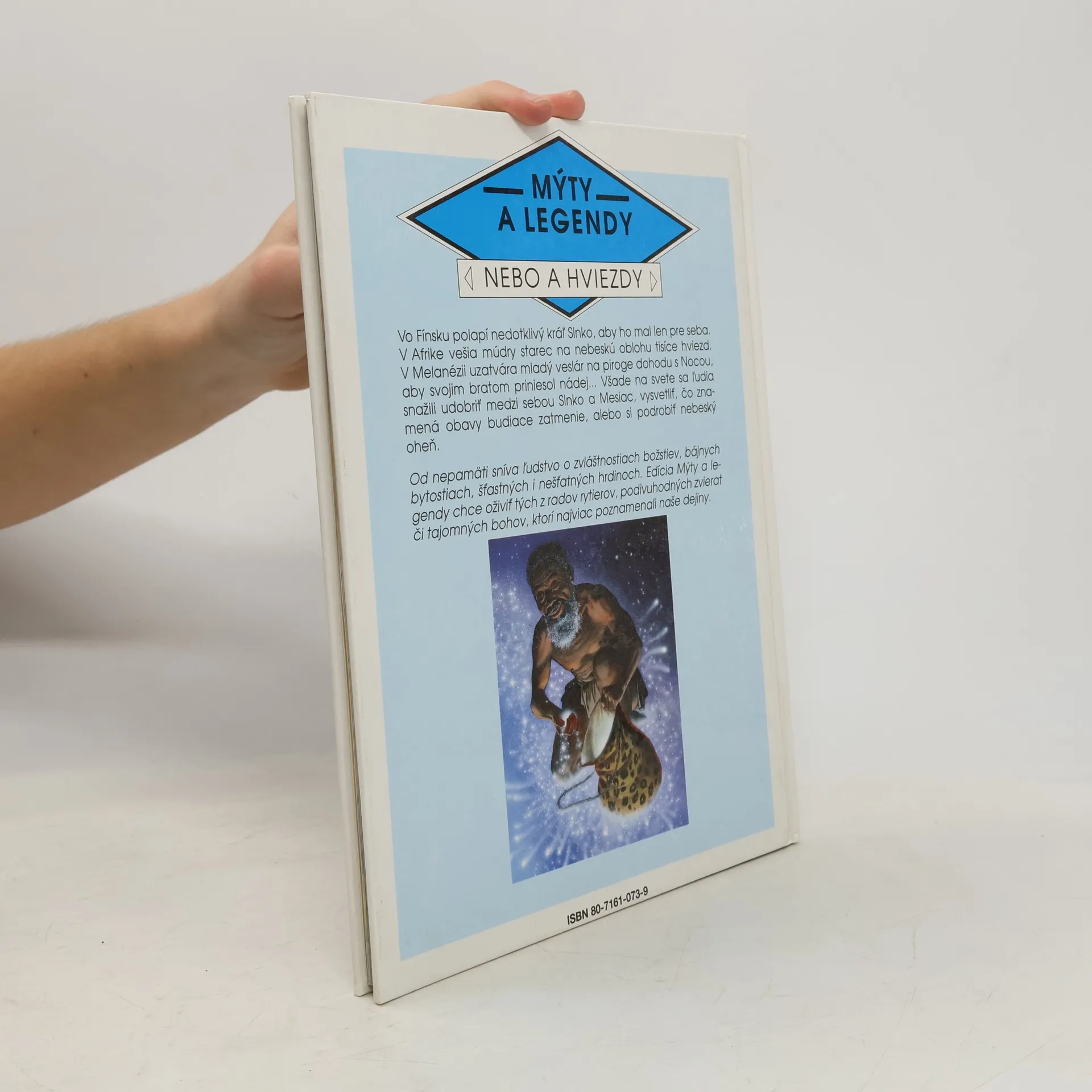 Vo Fínsku polapí nedotklivý kráľ Slnko, aby ho mal len pre seba. V Afrike vešia múdry starec na nebeskú oblohu tisíce hviezd. V Melanézii uzatvára mladý veslár na piroge dohodu s Nocou, aby svojim bratom priniesol nádej...Všade na svete sa ľudia snažili udobriť medzi sebou Slnko a Mesiac, vysvetliť, čo znamená obavy budiace zatmenie, alebo si podrobiť nebeský oheň. Od nepamäti sníva ľudstvo o zvláštnostiach božstiev, bájnych bytostiach, šťastných i nešťastných hrdinoch. Edícia Mýty a legendy chce oživiť tých z radov rytierov, podivuhodných zvierat či tajomných bohov, ktorí najviac poznamenali naše dejiny.