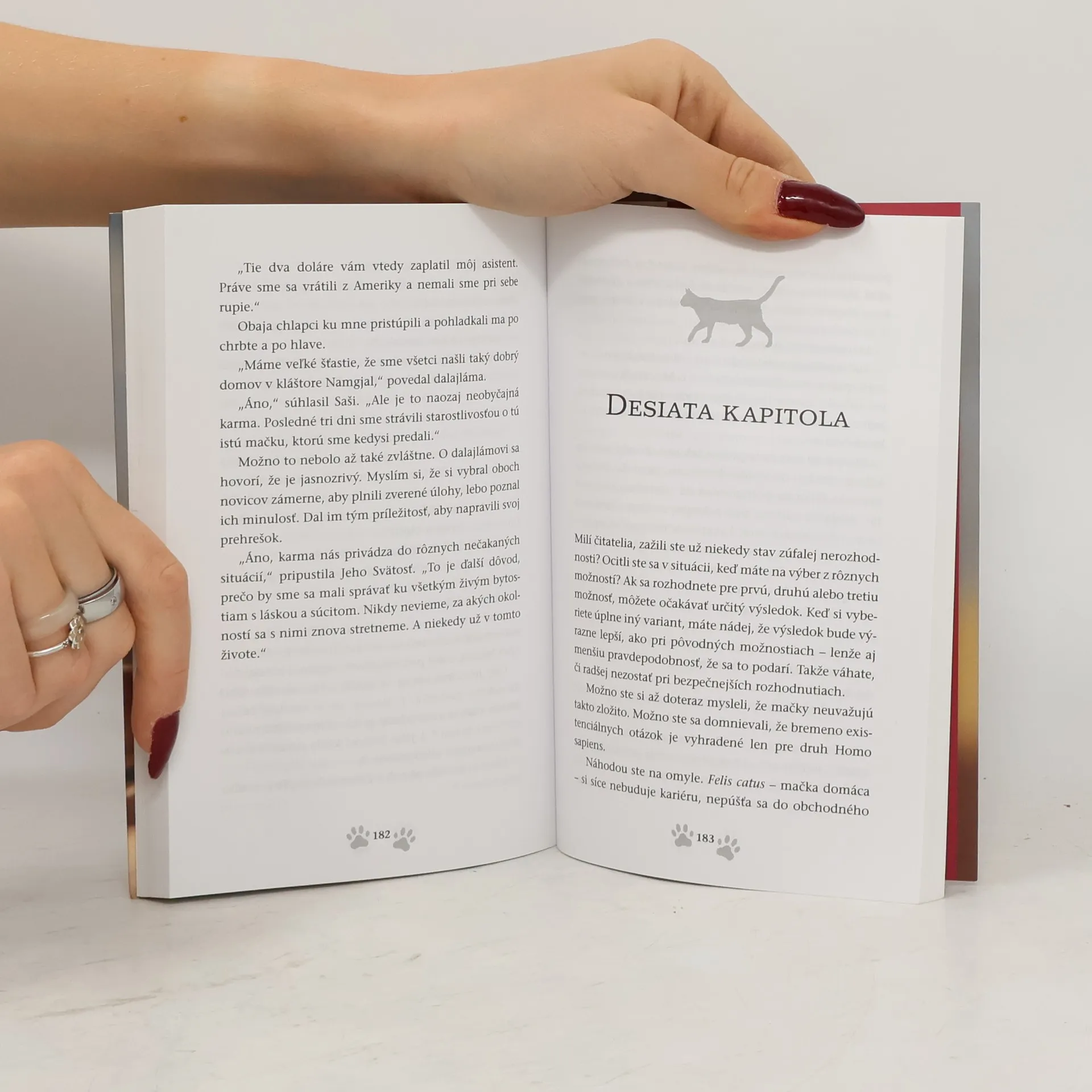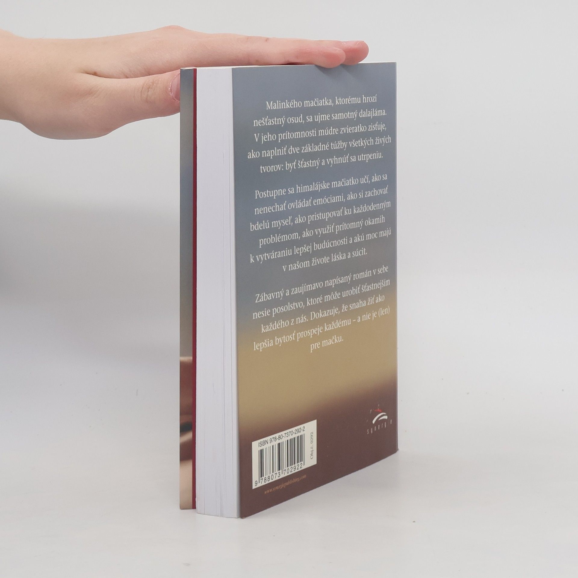 Malinkého mačiatka, ktorému hrozí nešťastný osud, sa ujme samotný dalajláma. V jeho prítomnosti múdre zvieratko zisťuje, ako naplniť dve základné túžby všetkých živých tvorov: byť šťastný a vyhnúť sa utrpeniu. Postupne sa himalájske mačiatko učí, ako sa nenechať ovládať emóciami, ako si zachovať bdelú myseľ, ako pristupovať ku každodenným problémom, ako využiť prítomný okamih k vytváraniu lepšej budúcnosti a akú moc majú v našom živote láska a súcit. Zábavný a zaujímavo napísaný román v sebe nesie posolstvo, ktoré môže urobiť šťastnejším každého z nás. Dokazuje, že snaha žiť ako lepšia bytosť prospeje každému – a nie je (len) pre mačku.