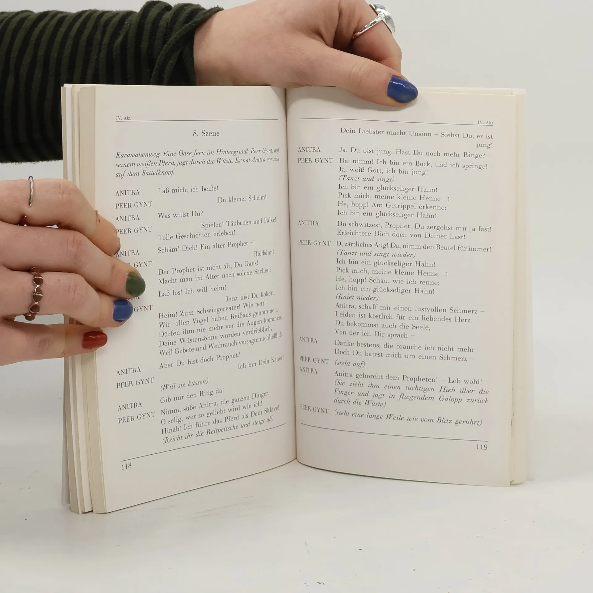 »Peer Gynt« ist der Beitrag Norwegens zum europäischen Welt- und Seelendrama des 19. Jahrhunderts; Henrik Ibsen verfasste das Stück mit neununddreißig Jahren. Peer Gynt, der Unbeständige, der Rastlose, erfährt am Ende eines langen Lebensweges, dass er nie bei sich selbst gewesen ist, dass er sich aber immer in den christlichen Tugenden Glauben, Hoffen und Lieben einer Frau befunden hat.