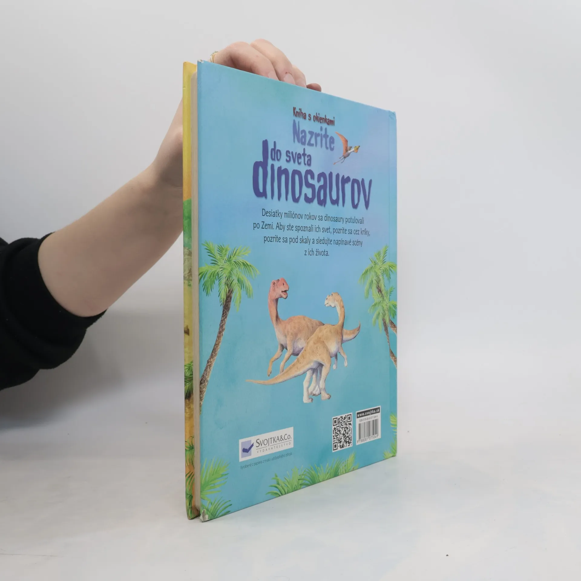 Desiatky miliónov rokov sa dinosaury potulovali po Zemi. Aby ste spoznali ich svet, pozrite sa cez kríky, pozrite sa pod skaly a sledujte napínavé scény z ich života. Obracajte stránky a odkrývajte okienka, aby ste zistili, ktoré typy dinosaurov odkiaľ pochádzali, kam sa podeli a ako sa menili v priebehu miliónov rokov.