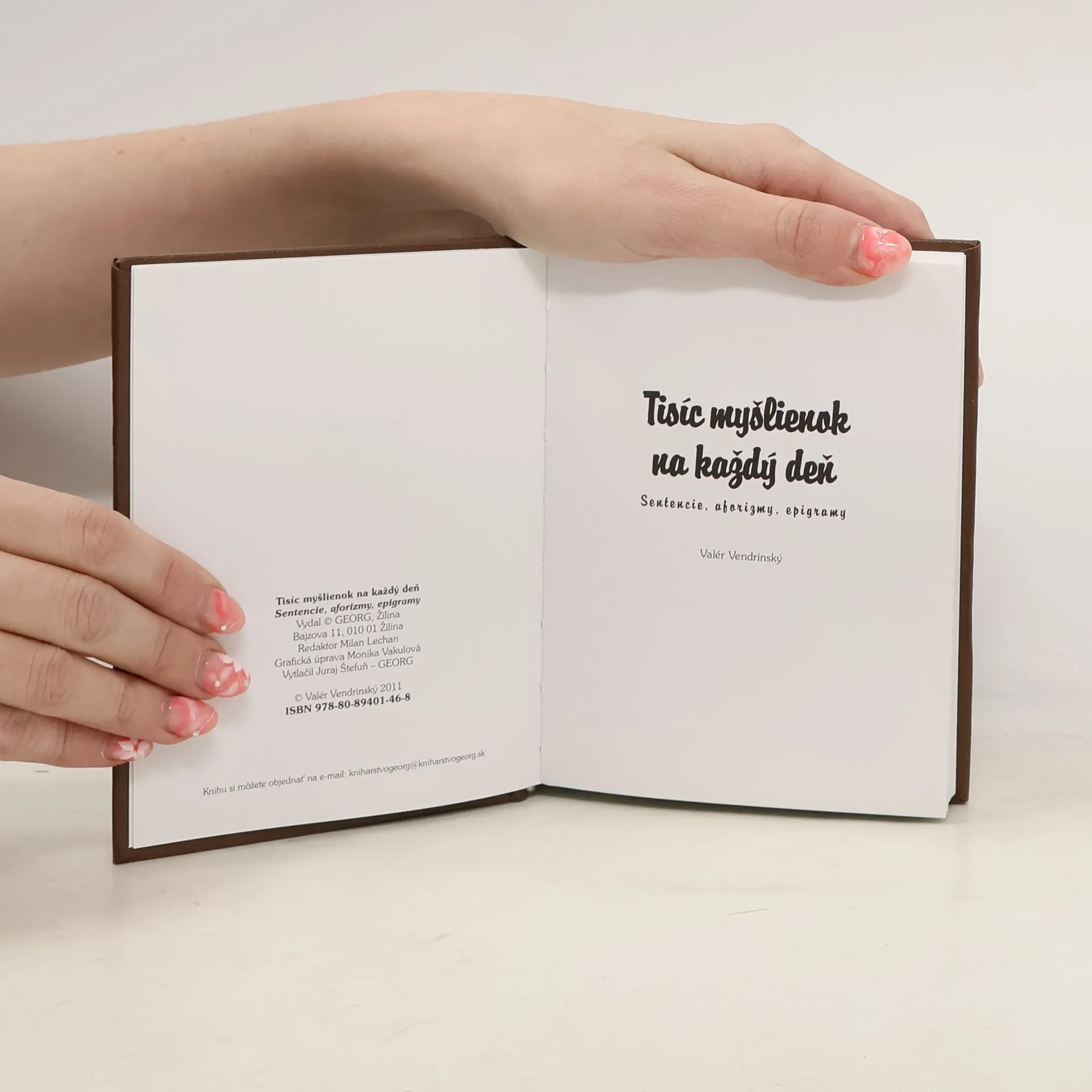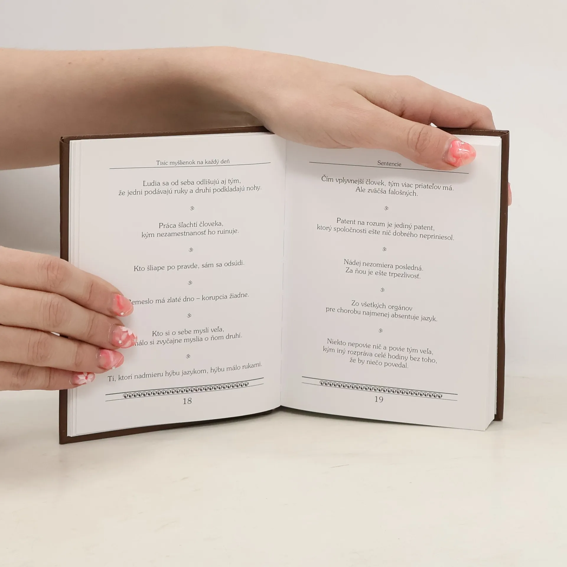 Knižka s darčekovým dizajnom i obsahom ponúka pestrý výber hlbokých, poučných i vtipných myšlienok - sentencií, aforizmov a epigramov.