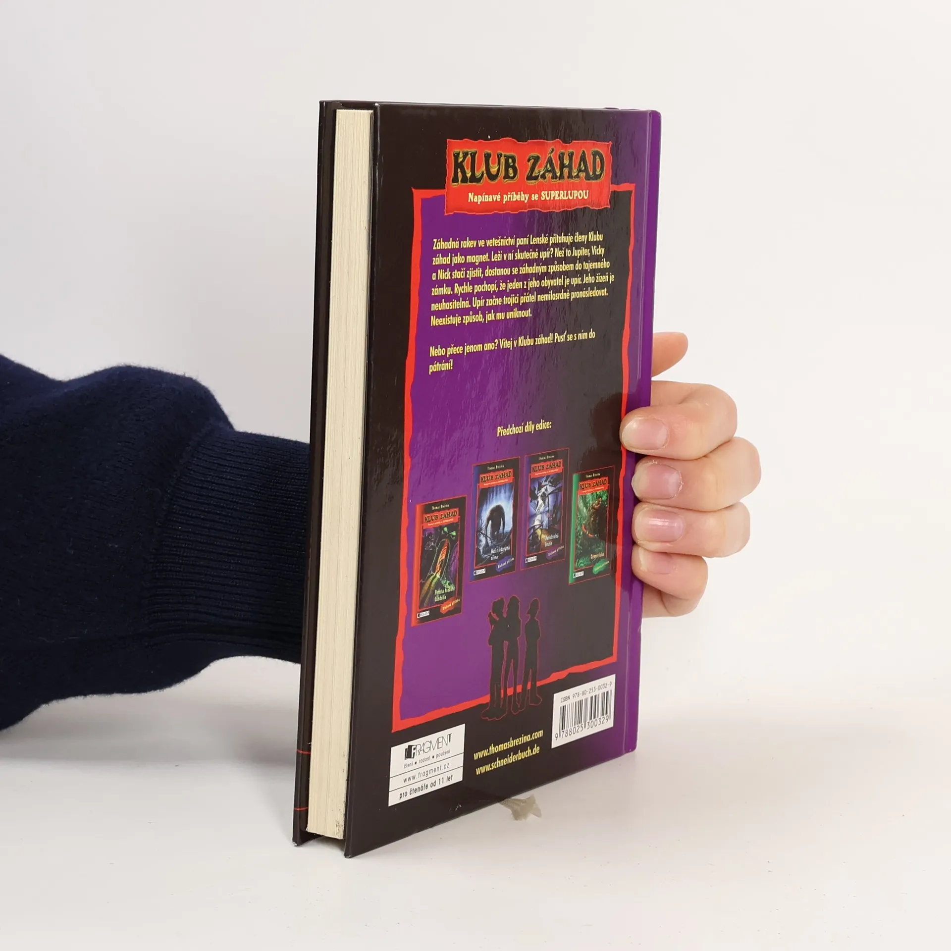 Záhadná rakev ve vetešnictví paní Lenské přitahuje členy Klubu záhad jako magnet. Leží v ní skutečně upír? Než to Jupiter, Vicky a Nick stačí zjistit, dostanou se záhadným způsobem do tajemného zámku. Rychle pochopí, že jeden z jeho obyvatel je upír, jehož žízeň je neuhasitelná. Upír začne trojici přátel nemilosrdně pronásledovat. Neexistuje způsob, jak mu uniknout. Nebo přece jenom ano? Vítej v Klubu záhad! Pusť se s ním do pátrání!