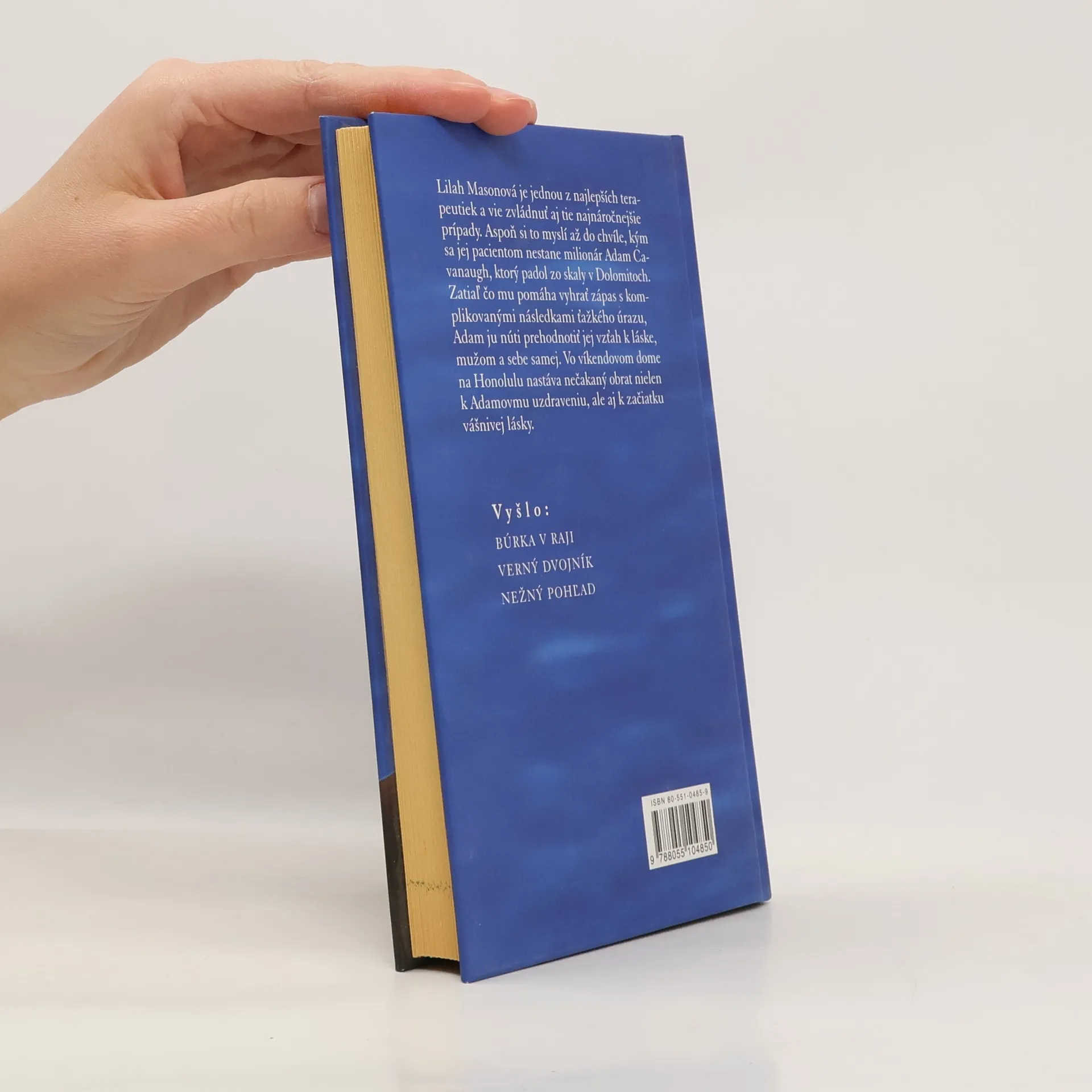 Ďalší z radu úspešných ženských románov... Lilah Masonová je jednou z najlepších terapeutiek a vie zvládnuť aj tie najnáročnejšie prípady. Aspoň si to myslí až do chvíle, kým sa jej pacientom nestane milionár Adam Cavanaugh, ktorý padol zo skaly v Dolomitoch. Zatiaľ čo mu pomáha vyhrať zápas s komplikovanými následkami ťažkého úrazu, Adam ju núti prehodnotiť jej vzťah k láske, mužom a sebe samej. Vo víkendovom dome na Honolulu nastáva nečakaný obrat nielen k Adamovmu uzdraveniu, ale aj k začiatku vášnivej lásky.