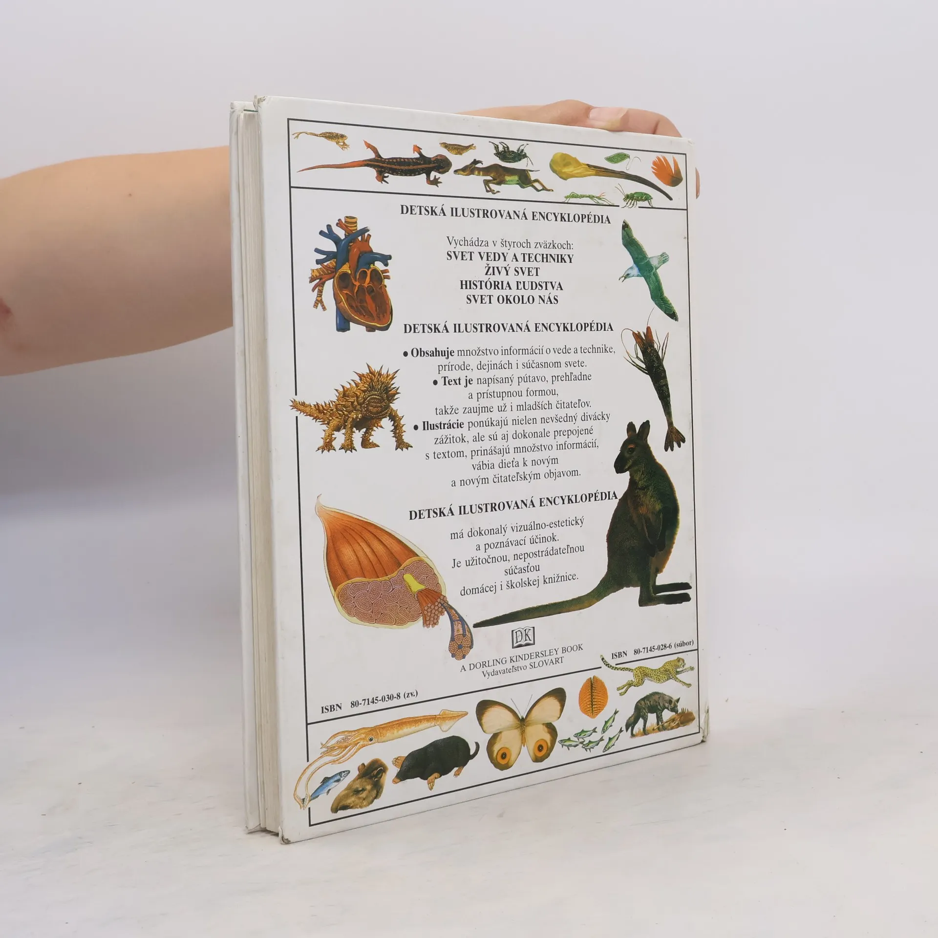 Každý diel obsahuje množstvo informácií o vede a technike, prírode, dejinách i súčasnom svete. Text je napísaný pútavo, prehľadne a prístupnou formou, takže zaujme už i mladších čitateľov. Ilustrácie ponúkajú nielen nevšedný divácky zážitok, ale sú aj dokonale prepojené s textom, prinášajú množstvo informácií, vábia dieťa k novým a novým čitateľským objavom. Obsah: Príroda v minulosti a dnes, Zo života živočíchov, Rastliny a huby, Hmyz a iné bezstavovce, Morské živočíchy, Plazy a obojživelníky, Vtáky, Cicavce, Ľudské telo, Prírodné spoločenstvá, Ochrana prírody. ISBN pro soubor: 80-7145-028-6
