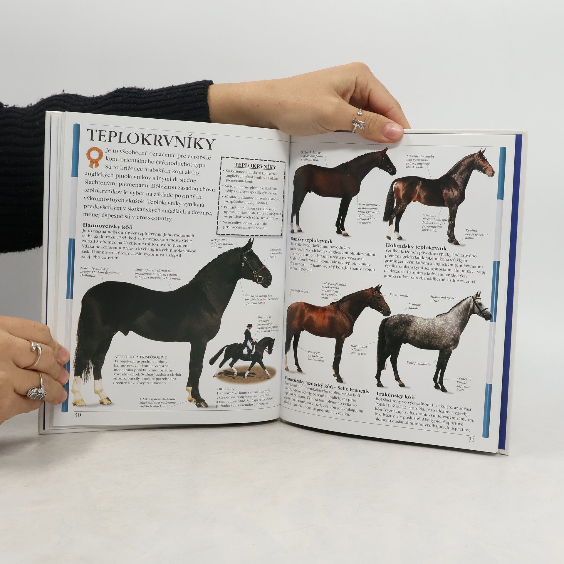 Kapitoly: Pôvod koní, Kone v súčasnosti, Stavba tela, Typy koní a poníkov, Na prácu aj pre potešenie, Arabské kone, Španielske kone, Anglický plnokrvník, Horské a slatinné plemená poníkov, Európske poníky, Ostatné poníky, Teplokrvníky, Írsky ťažný kôň a clevelandský hnedák, Ťažké ťažné kone, Oceňované zafarbenie, Kone v pohybe, Pastierske kone, Divé kone, Prehľad plemien koní a poníkov.