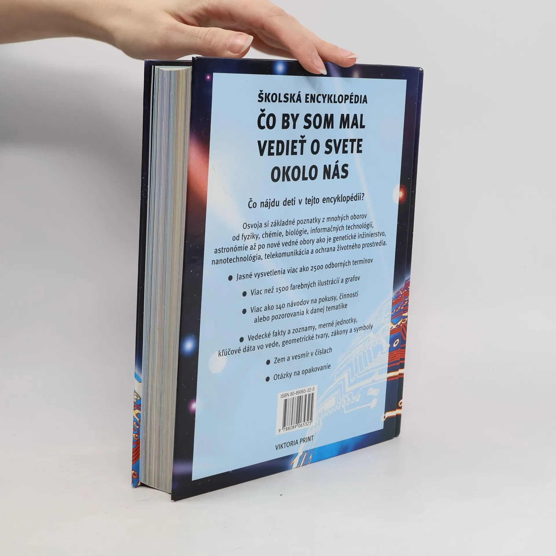 Co najdou děti v této bohatě ilustrované encyklopedii? Osvojí si základní poznatky z mnoha oborů od fyziky, chemie, biologie, informačních technologií, astronomie až po nové vědní obory jako je genetické inženýrství, nanotechnologie, telekomunikace a ochrana životního prostředí. - Jasná vysvětlení více než 2500 odborných termínů - Více než 1500 barevných ilustrací a grafů - Více než 140 návodů na pokusy, činnosti nebo pozorování k danému tématu - Vědecká fakta a seznamy, měrné jednotky, klíčová data ve vědě, geometrické tvary, zákony a symboly - Země a vesmír v číslech - Otázky k opakování