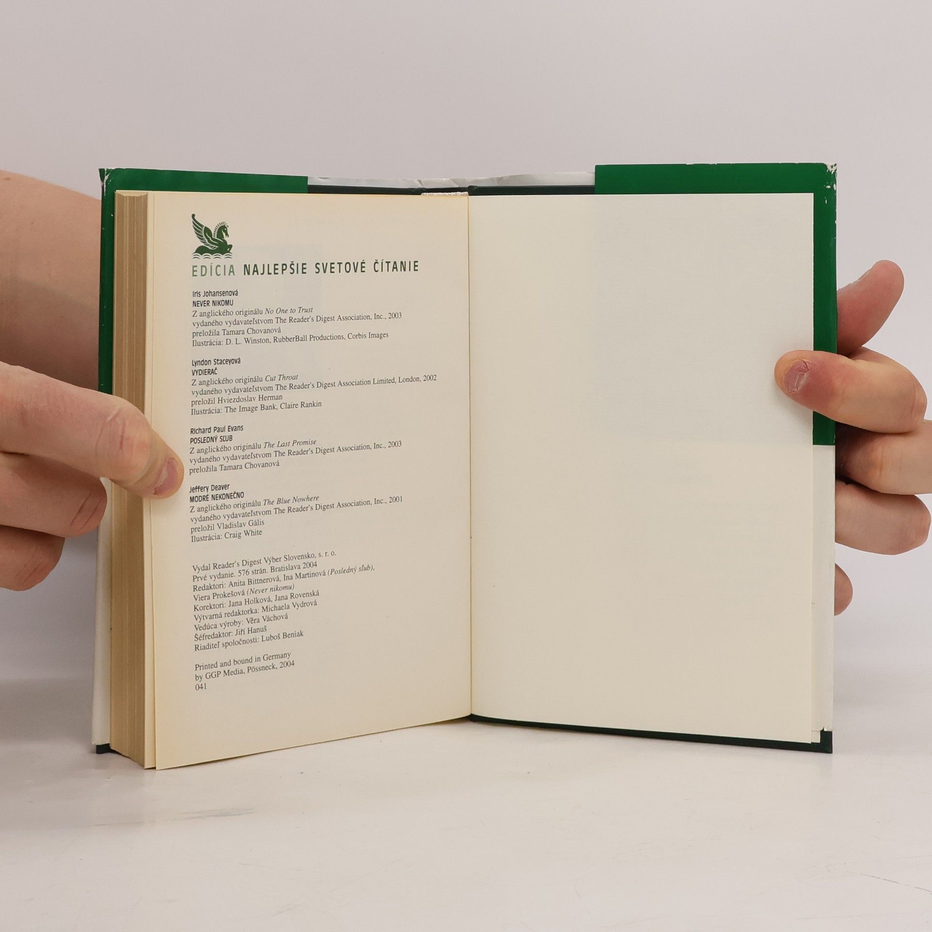 Nejlepšie světové čitanie. Never nikomu. Vydierač. Posledný slub. Modré nekonečno, Jeffery Deaver, Iris Johansen, Lyndon Stacey, Richard Paul Evans