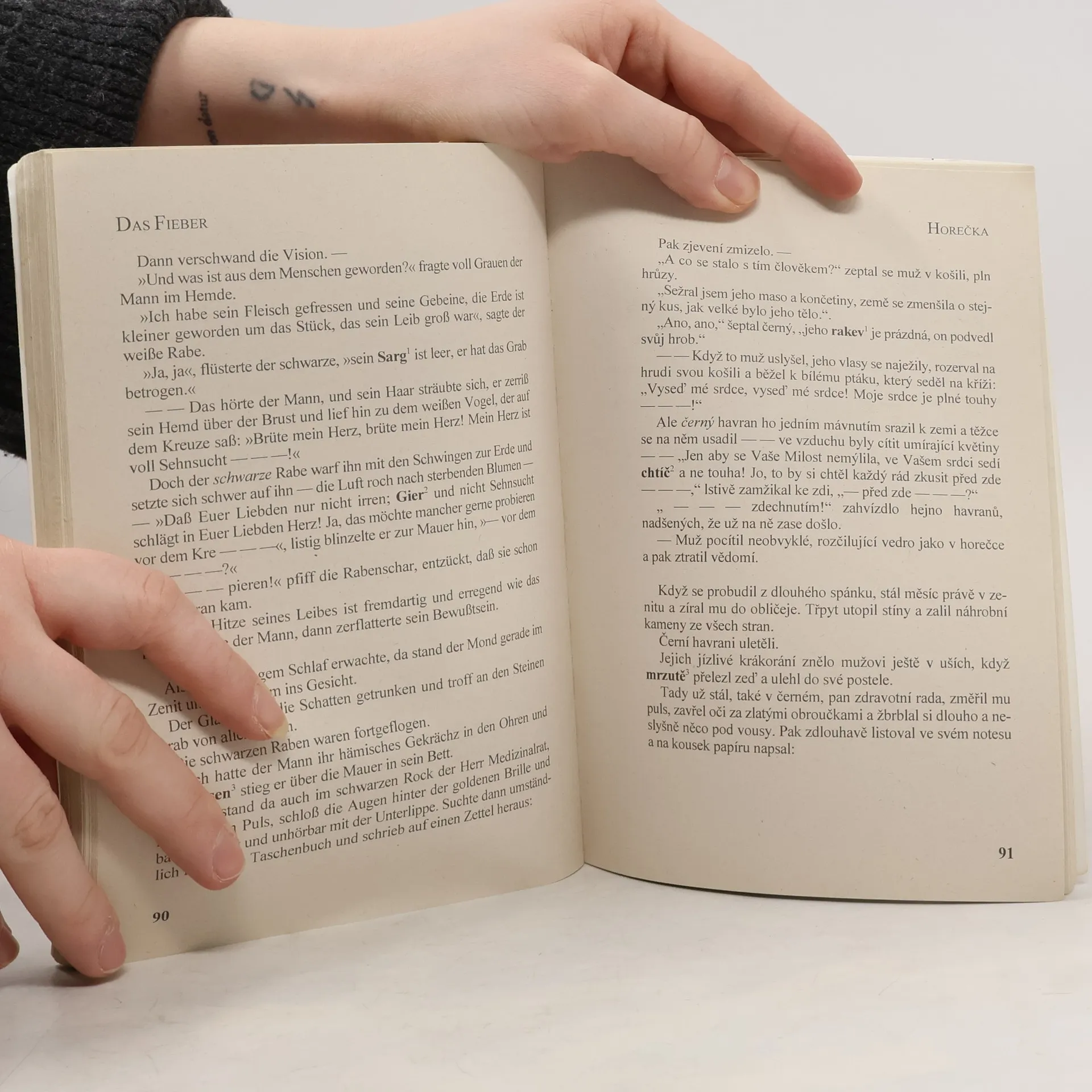 Výběr z povídek Gustava Meyrinka je zpracován zrcadlovým způsobem – na levé straně je původní text, na pravé straně pak překlad do češtiny, čímž odpadá pracné a zdlouhavé hledání ve slovníku. Méně obvyklé výrazy, ustálená rčení nebo slovní spojení jsou navíc v původním i přeloženém textu zvýrazněny.