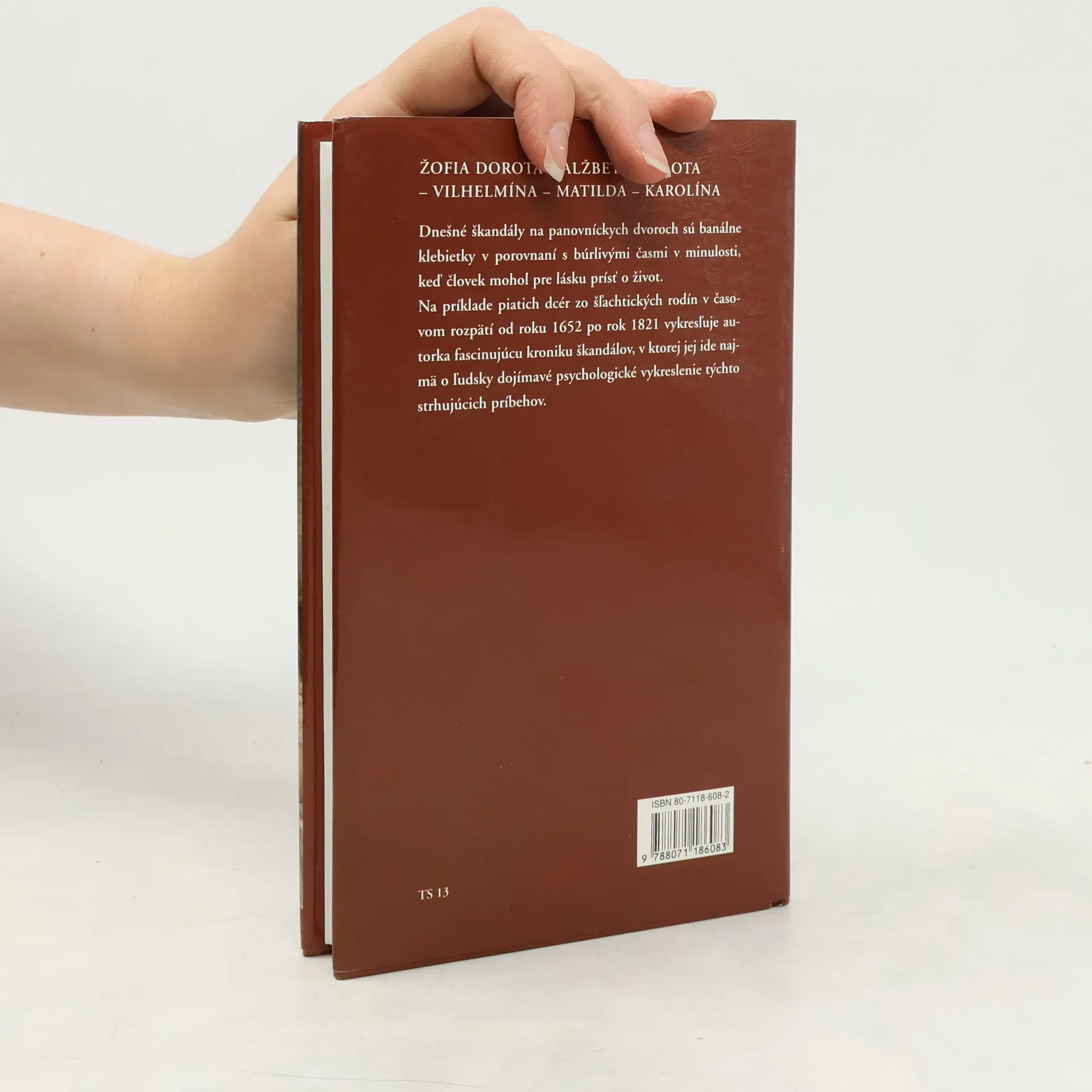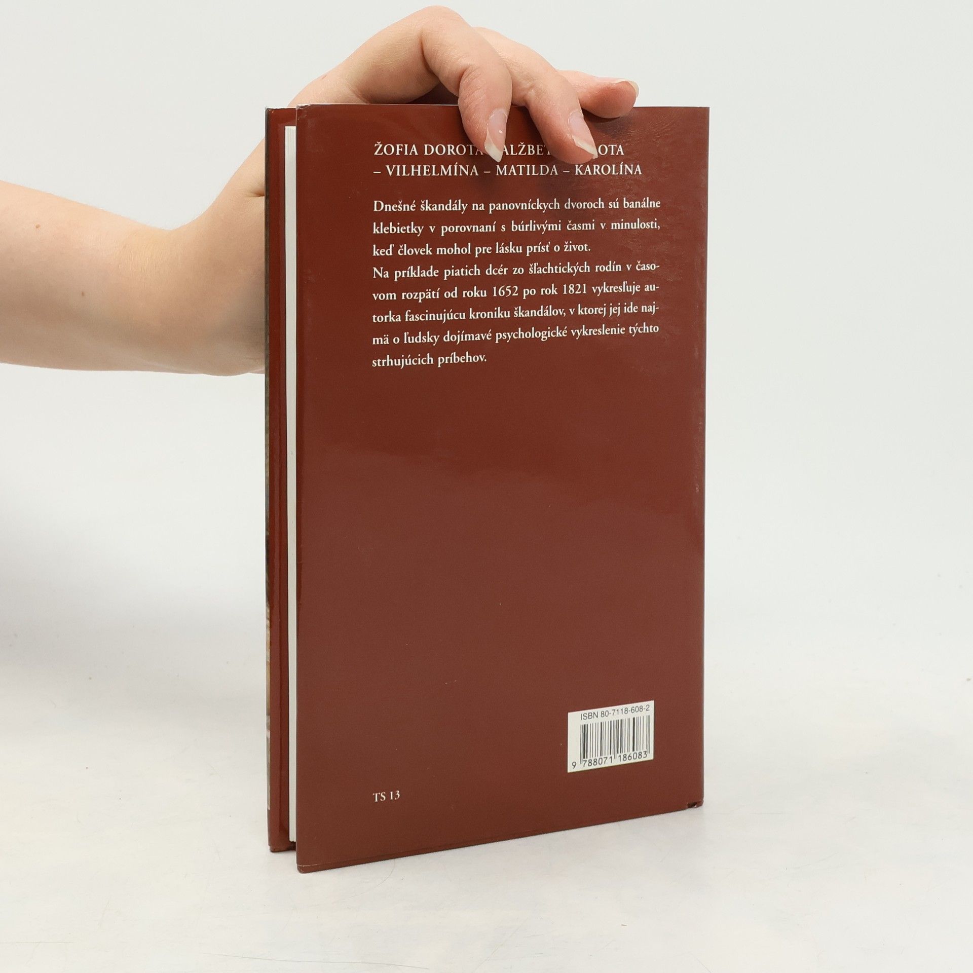 Žofia Dorota - Alžbeta Šarlota - Vilhelmína - Matilda - Karolína Na príklade piatich dcér zo šľachtických rodín v časovom rozpätí od roku 1652 po rok 1821 vykresľuje autorka fascinujúcu kroniku škandálov, v ktorej jej ide najmä o ľudsky dojímavé psychologické vykreslenie týchto strhujúcich príbehov.