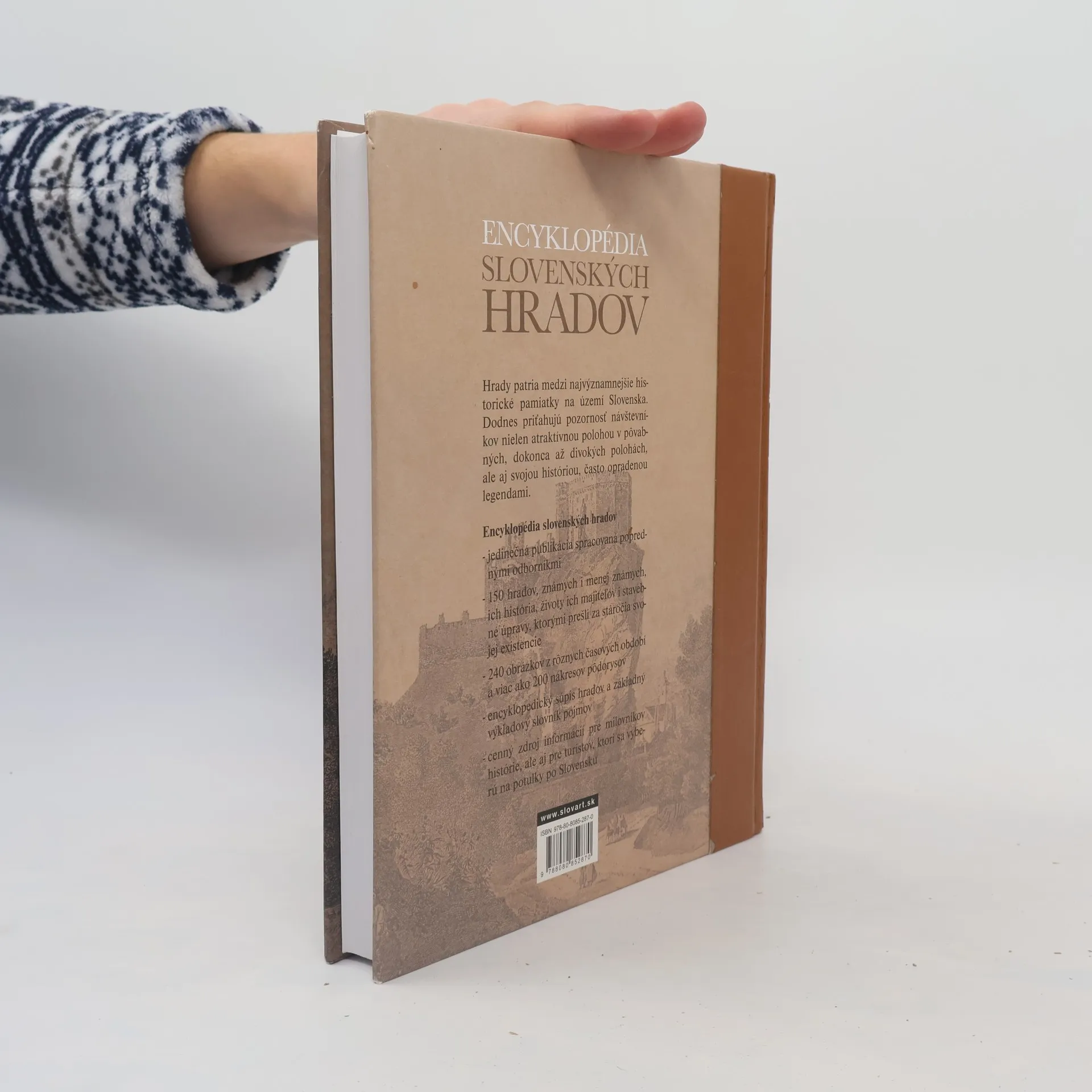 Publikácia zachytáva základné črty vývoja hradov vrcholného a neskorého stredoveku na Slovensku. Hrady patria medzi najvýznamnejšie historické pamiatky na území Slovenska. Dodnes priťahujú pozornosť návštevníkov nielen svojou atraktívnou polohou v pôvabných, dokonca až divokých polohách, ale aj svojou históriou, často opradenou legendami. Encyklopédia slovenských hradov, jedinečná publikácia spracovaná poprednými odborníkmi, dokumentuje históriu 150 hradov, známych i menej známych, životy ich majiteľov i stavebné úpravy, ktorými prešli za stáročia svojej existencie. Obsahuje 240 obrázkov z rôznych časových období a viac ako 200 nákresov pôdorysov, základný výkladový slovník pojmov a encyklopedický súpis hradov. Publikácia je cenným zdrojom informácií pre milovníkov histórie, ale aj pre turistov, ktorí sa vyberú na potulky po Slovensku.