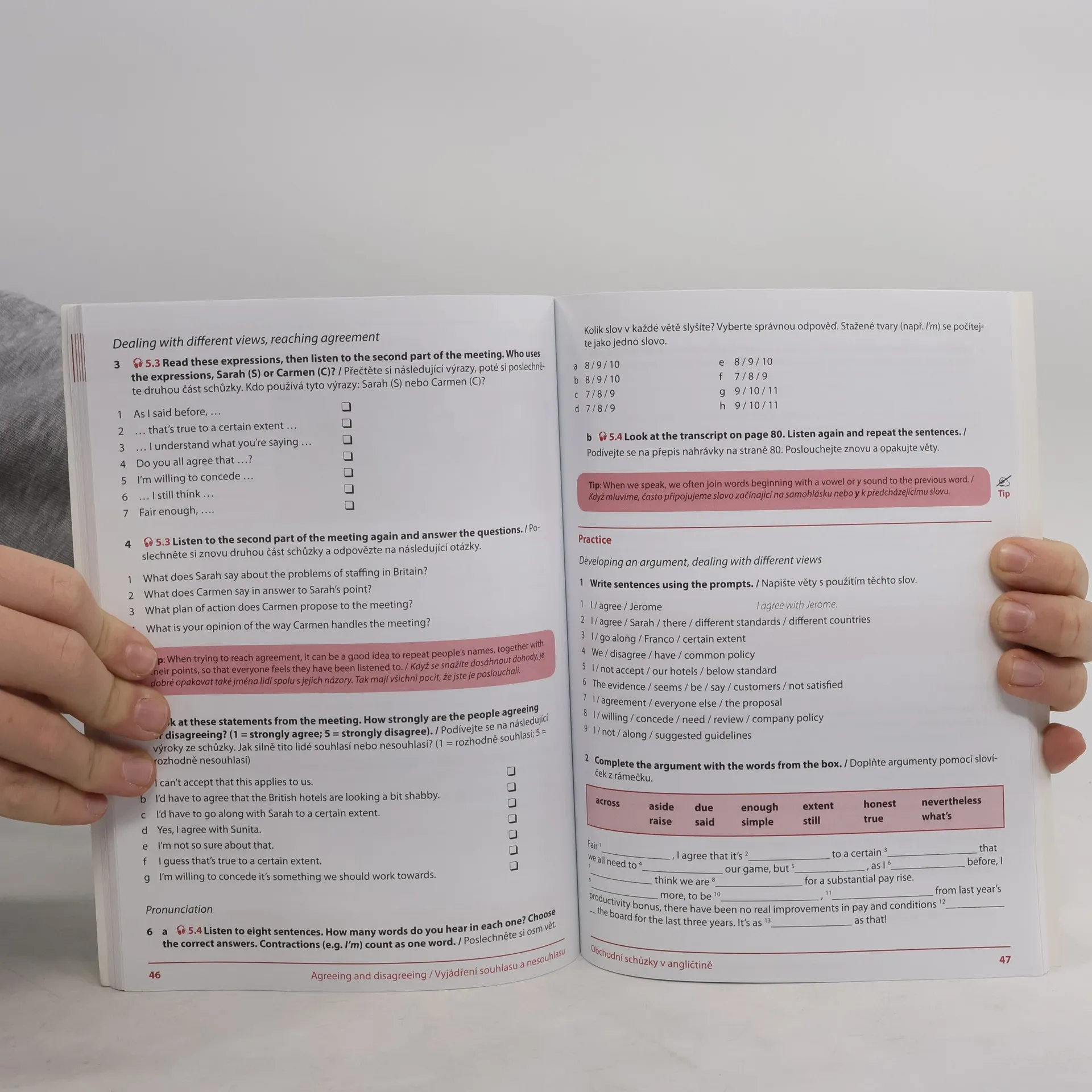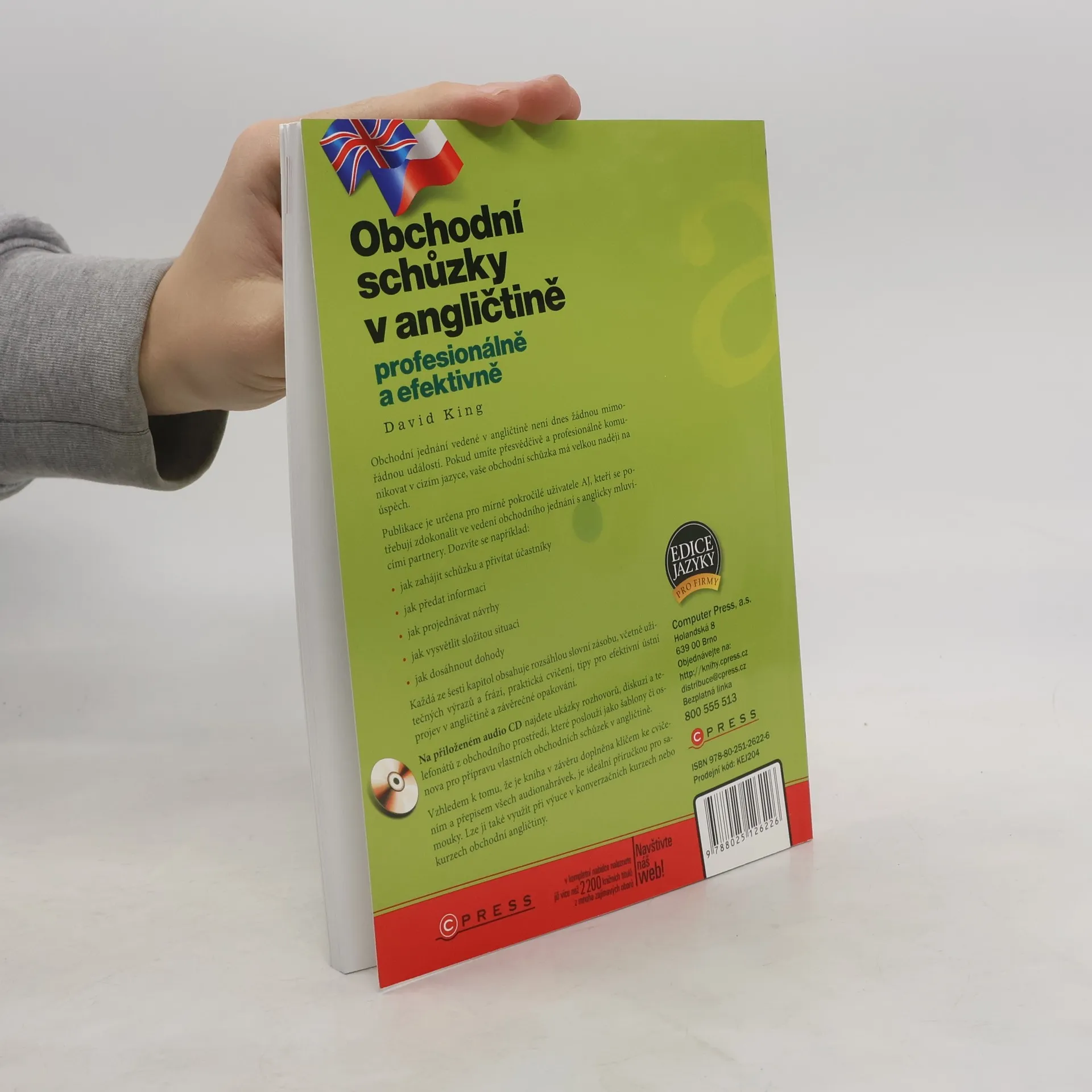 Obchodní jednání vedené v angličtině není dnes žádnou mimořádnou událostí. Pokud umíte přesvědčivě a profesionálně komunikovat v cizím jazyce, vaše obchodní schůzka má velkou naději na úspěch. Publikace je určena pro mírně pokročilé uživatele AJ, kteří se potřebují zdokonalit ve vedení obchodního jednání s anglicky mluvícími partnery. Dozvíte se například: jak zahájit schůzku a přivítat účastníky jak předat informaci jak projednávat návrhy jak vysvětlit složitou situaci jak dosáhnout dohody Každá ze šesti kapitol obsahuje rozsáhlou slovní zásobu, včetně užitečných výrazů a frází, praktická cvičení, tipy pro efektivní ústní projev v angličtině a závěrečné opakování. Vzhledem k tomu, že je kniha v závěru doplněna klíčem ke cvičením a přepisem všech audionahrávek, je ideální příručkou pro samouky. Lze ji také využít při výuce v konverzačních kurzech nebo kurzech obchodní angličtiny.