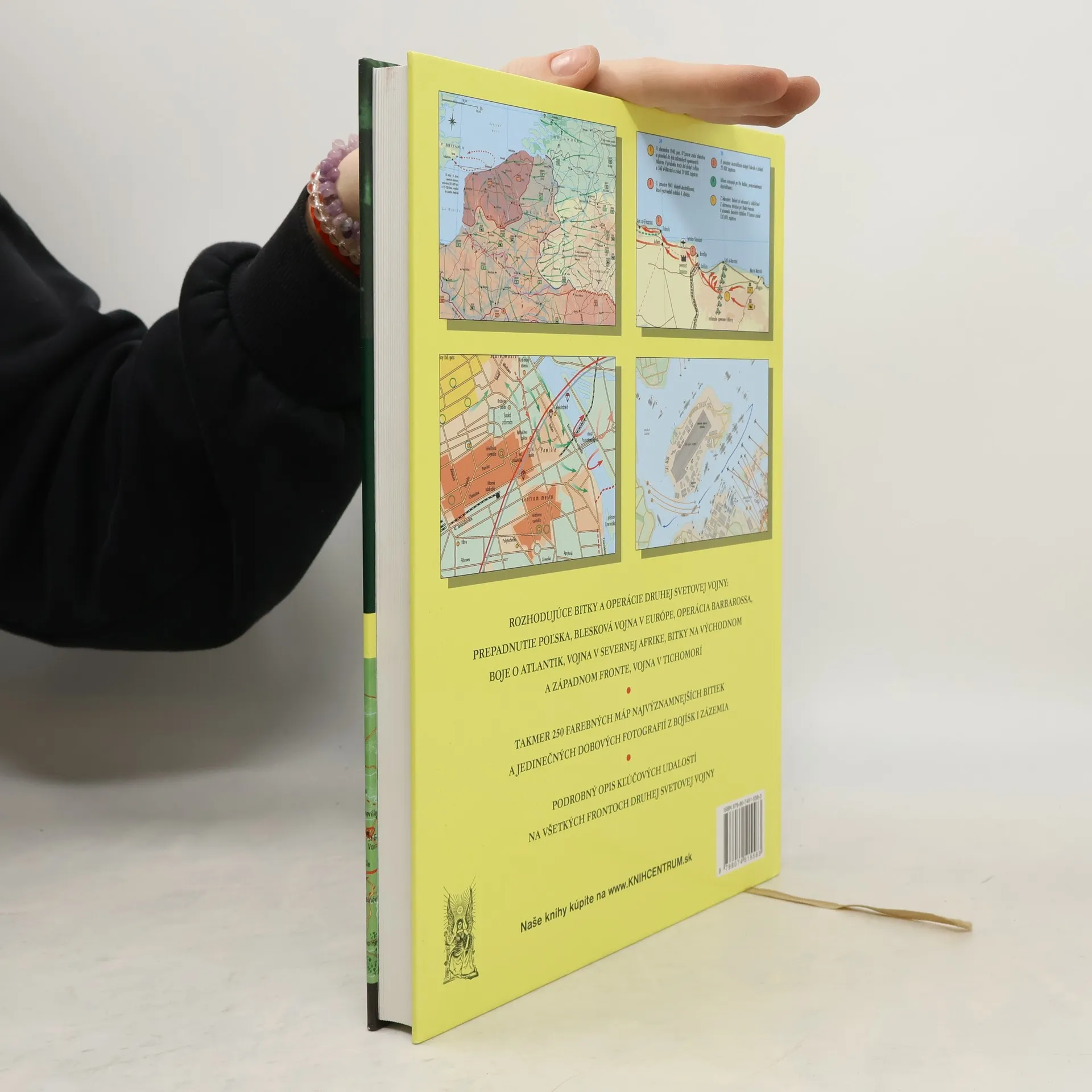 Rozhodujúce bitky a operácie druhej svetovej vojny: prepadnutie Poľska, blesková vojna v Európe, Operácia Barbarossa, boje o Atlantik, vojna v severnej Afrike, boje na východnom a západnom fronte, vojna v Tichomorí. Podrobný popis kľúčových udalostí na všetkých frontoch druhej svetovej vojny. Takmer 250 farebných máp najvýznamnejších operácií a bitiek druhej svetovej vojny, unikátne dobové fotografie z bojísk aj zo zázemia.