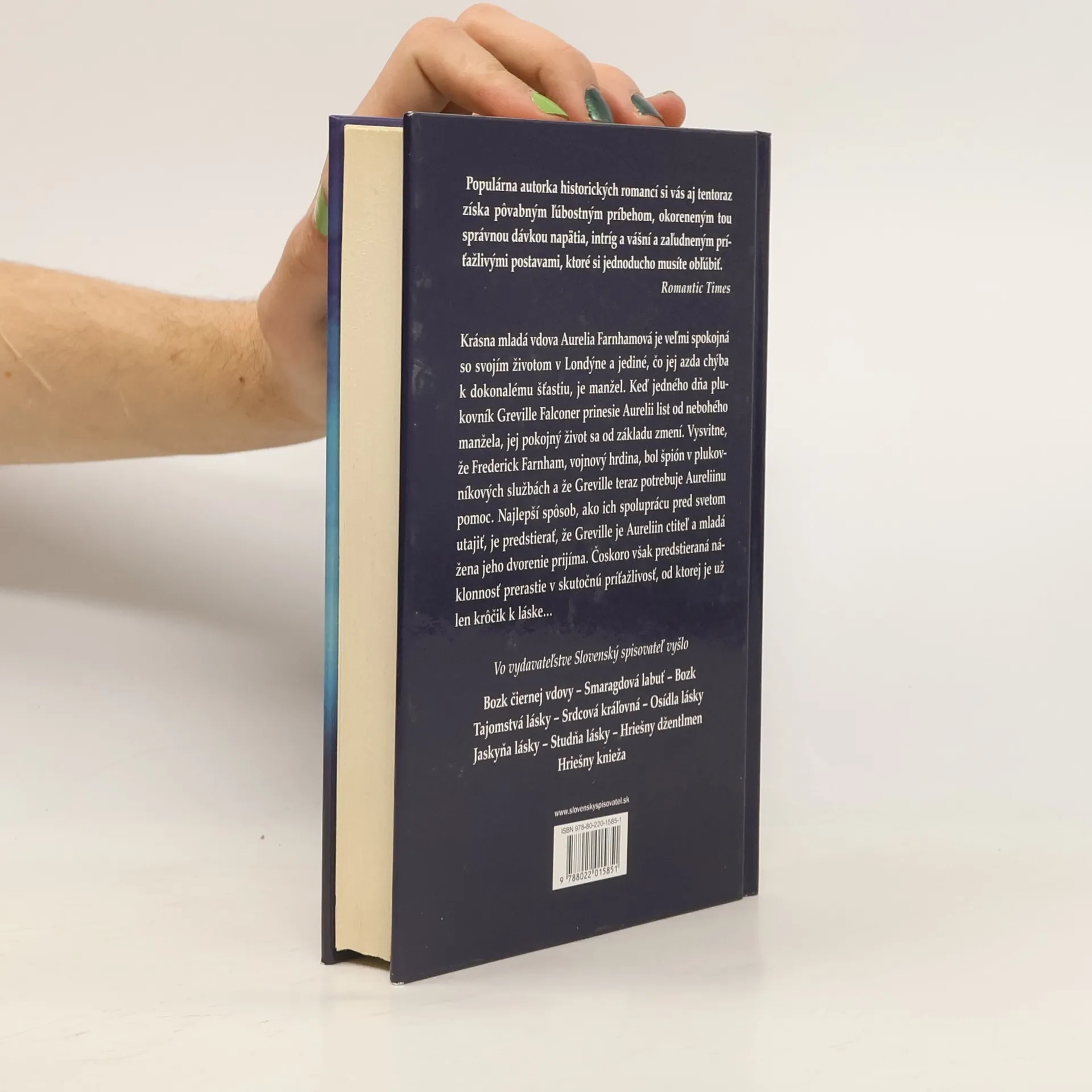 Ďalšia skvelá historická romanca Hriešny manžel od obľúbenej autorky Jane Featherovej. Krásna mladá vdova Aurelia Farnhamová neverí vlastným očiam, keď jej jedného dňa plukovník Greville Falconer prinesie list od nebohého manžela, vojnového hrdinu. Vysvitne, že Frederick Farnham bol v skutočnosti špión v plukovníkových službách a Greville prišiel požiadať Aureliu o pomoc...