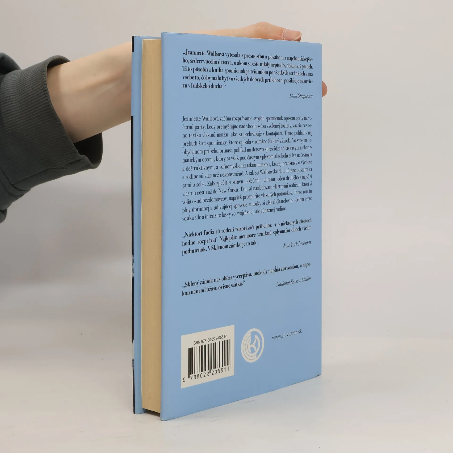 Sklený zámok je román pozoruhodných spomienok, ktoré vypovedajú o nezlomnosti a vykúpení. Odhaľujú život rodiny, ktorá bola hlboko dysfunkčná, no zároveň nesmierne húževnatá. Tento úžasný príbeh je napísaný s hlbokou úctou k hlavným protagonistom, s úprimnosťou a láskou, ktorá ho napĺňa pôvabom. Jeho sila sa skrýva predovšetkým v jeho detskej perspektíve a nesentimentálnom prozaickom stvárnení skutočnosti, keď čitatelia budú žasnúť nad inteligenciou a nezlomnosťou wallsovských detí. Je knihou spomienok prestúpenou intenzívnou láskou k tejto zvláštnej, no lojálnej rodine.