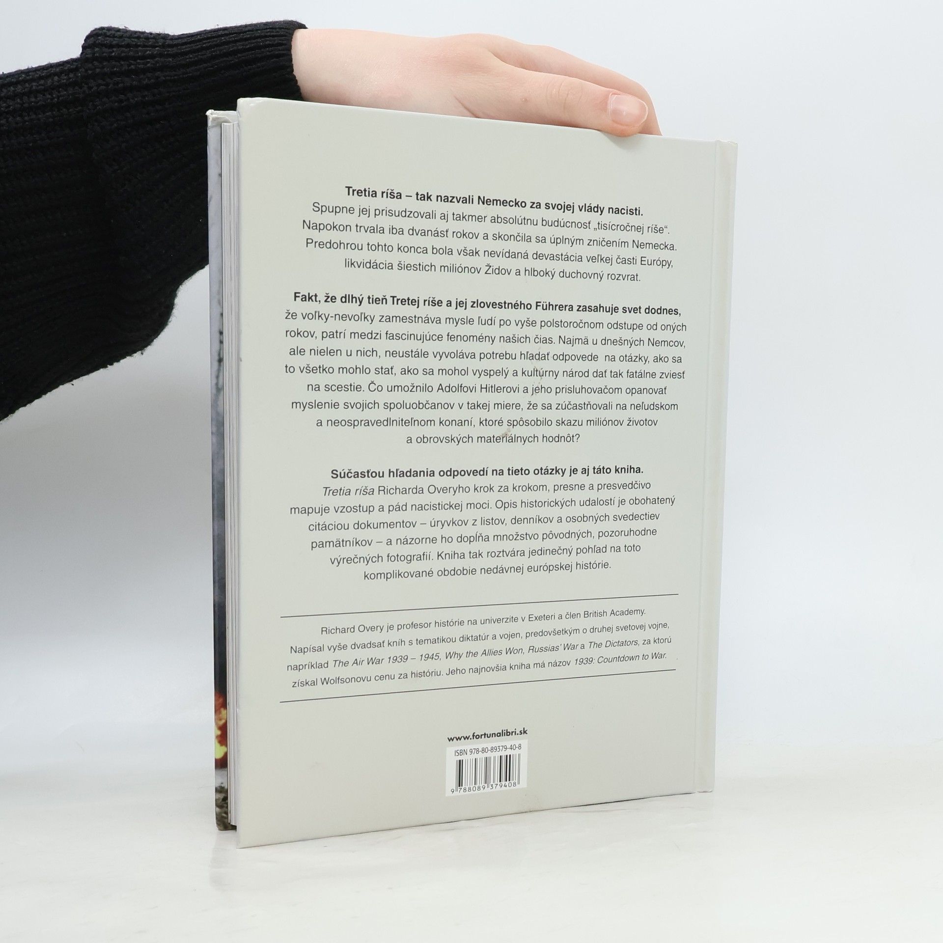 Tretia ríša Richarda Overyho krok za krokom, presne a presvedčivo mapuje vzostup a pád nacistickej moci. Opis historických udalostí je obohatený citáciou dokumentov - úryvkov z listov, denníkov a osobných svedectiev pamätníkov - a názorne ho dopĺňa množstvo pôvodných, pozoruhodne výrečných fotografií. Kniha tak roztvára jedinečný pohľad na toto komplikované obdobie nedávnej európskej histórie.