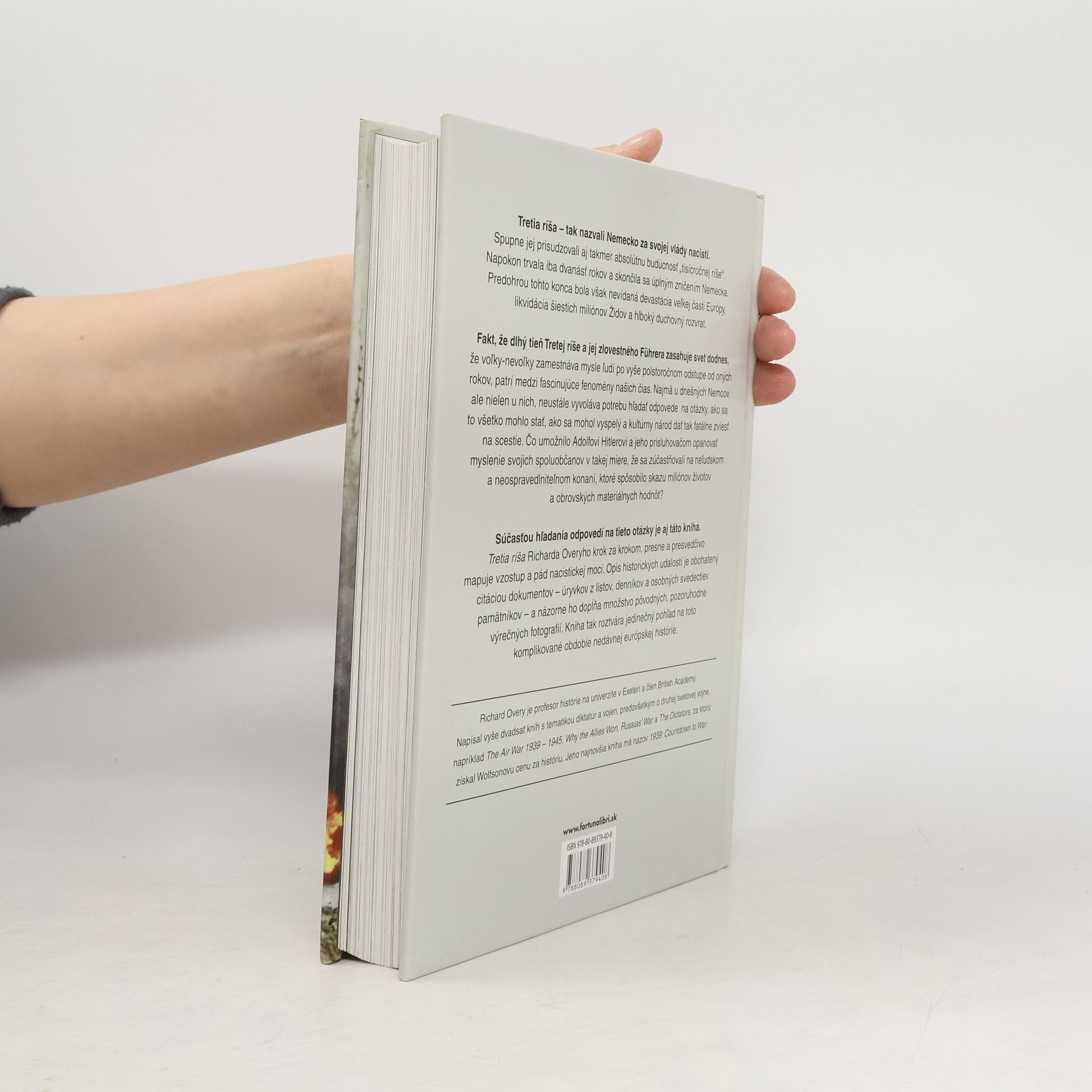Tretia ríša Richarda Overyho krok za krokom, presne a presvedčivo mapuje vzostup a pád nacistickej moci. Opis historických udalostí je obohatený citáciou dokumentov - úryvkov z listov, denníkov a osobných svedectiev pamätníkov - a názorne ho dopĺňa množstvo pôvodných, pozoruhodne výrečných fotografií. Kniha tak roztvára jedinečný pohľad na toto komplikované obdobie nedávnej európskej histórie.