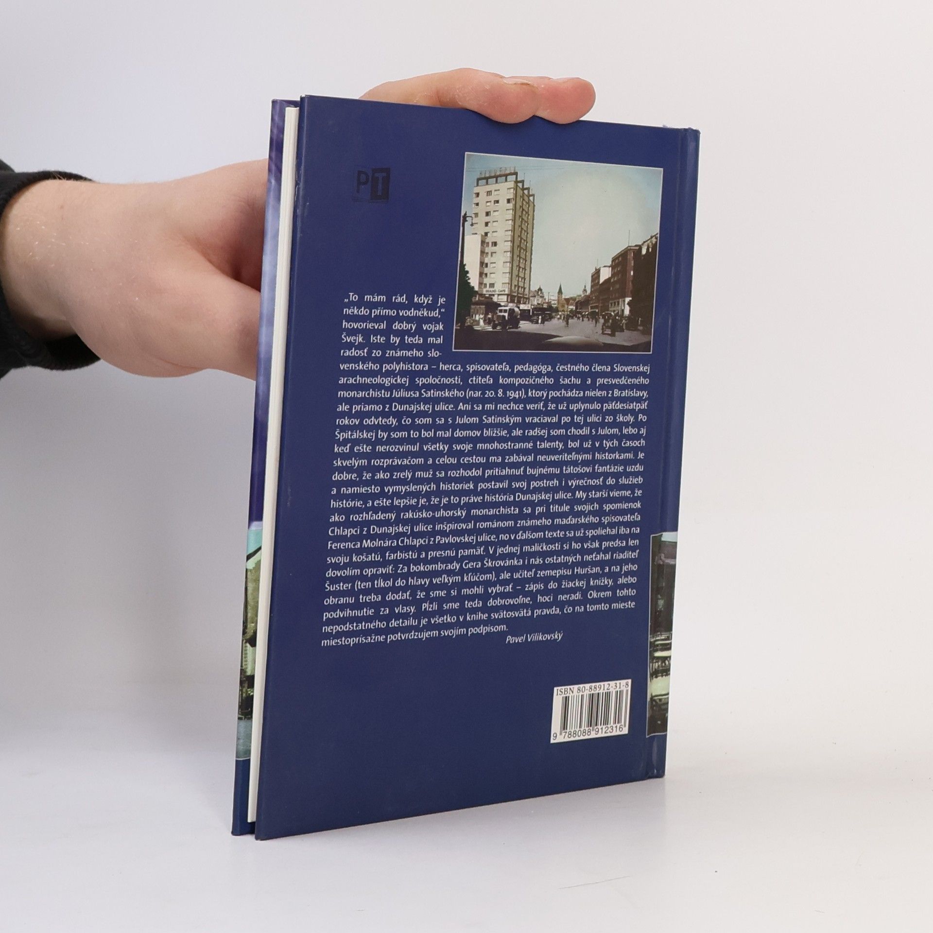 "To mám rád, když je někdo přímo vodněkud," hovorieval dobrý vojak Švejk. Iste by teda mal radosť zo známeho slovenského polyhistora - herca, spisovateľa, pedagóga, čestného člena Slovenskej arachneologickej spoločnosti, ctiteľa kompozičného šachu a presvedčeného monarchistu Júliusa Satinského (nar. 20. 8. 1941), ktorý pochádza nielen z Bratislavy, ale priamo z Dunajskej ulice. Ani sa mi nechce veriť, že už uplynulo päťdesiatpäť rokov odvtedy, čo som sa s Julom Satinským vraciaval po tej ulici zo školy. Po Špitálskej by som bol mal domov bližšie, ale radšej som chodil s Julom, lebo aj keď ešte nerozvinul všetky svoje mnohostranné talenty, bol už v tých časoch skvelým rozprávačom a celou cestou ma zabával neuveriteľnými historkami..." Pavel Vilikovský